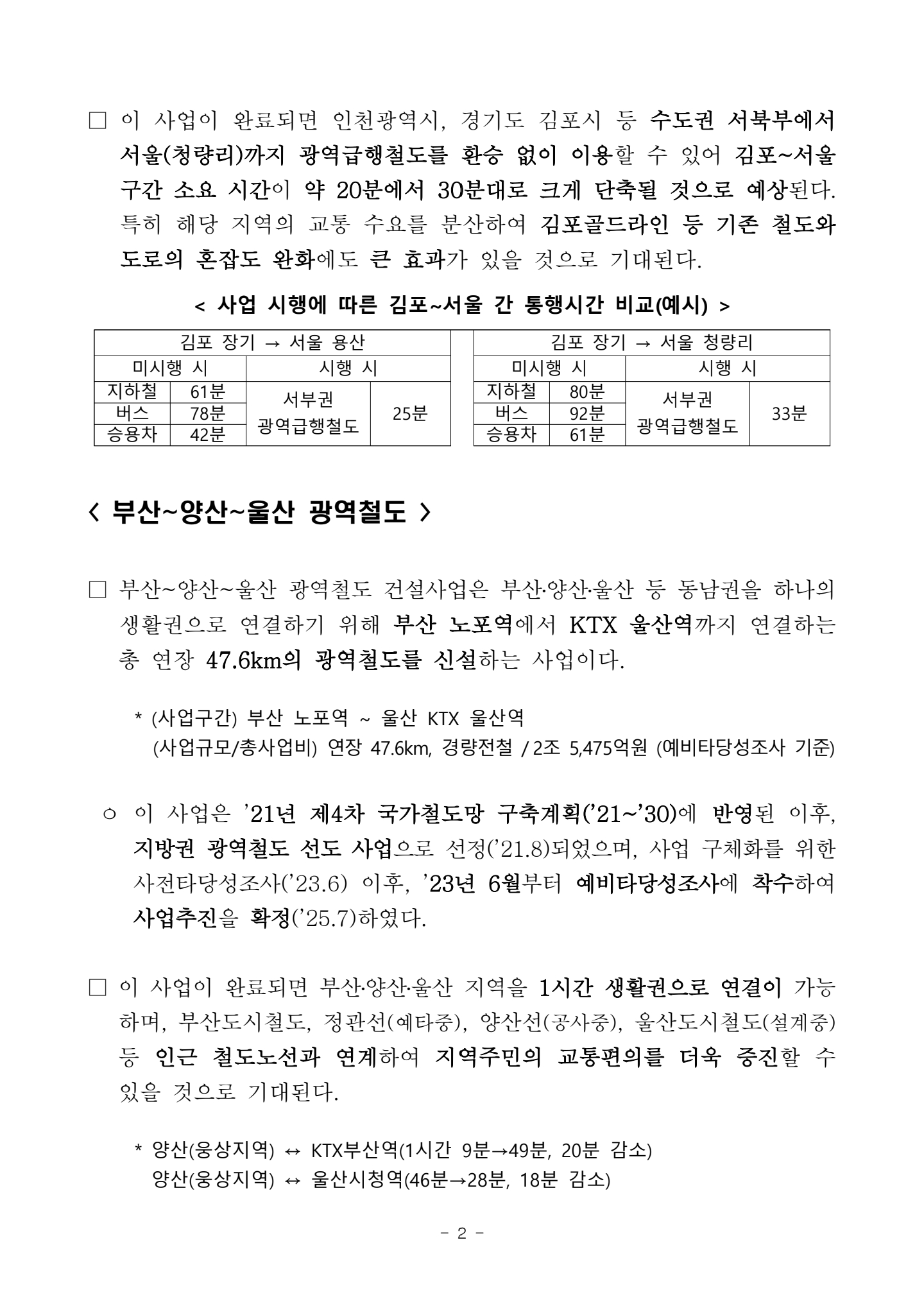 [14] 양산~울산 광역철도, 구리~성남 지하고속도로 3개 ... https://www.korea.kr/briefing/pressReleaseView.do?newsId=156697574&pWise=sub&pWiseSub=C1
