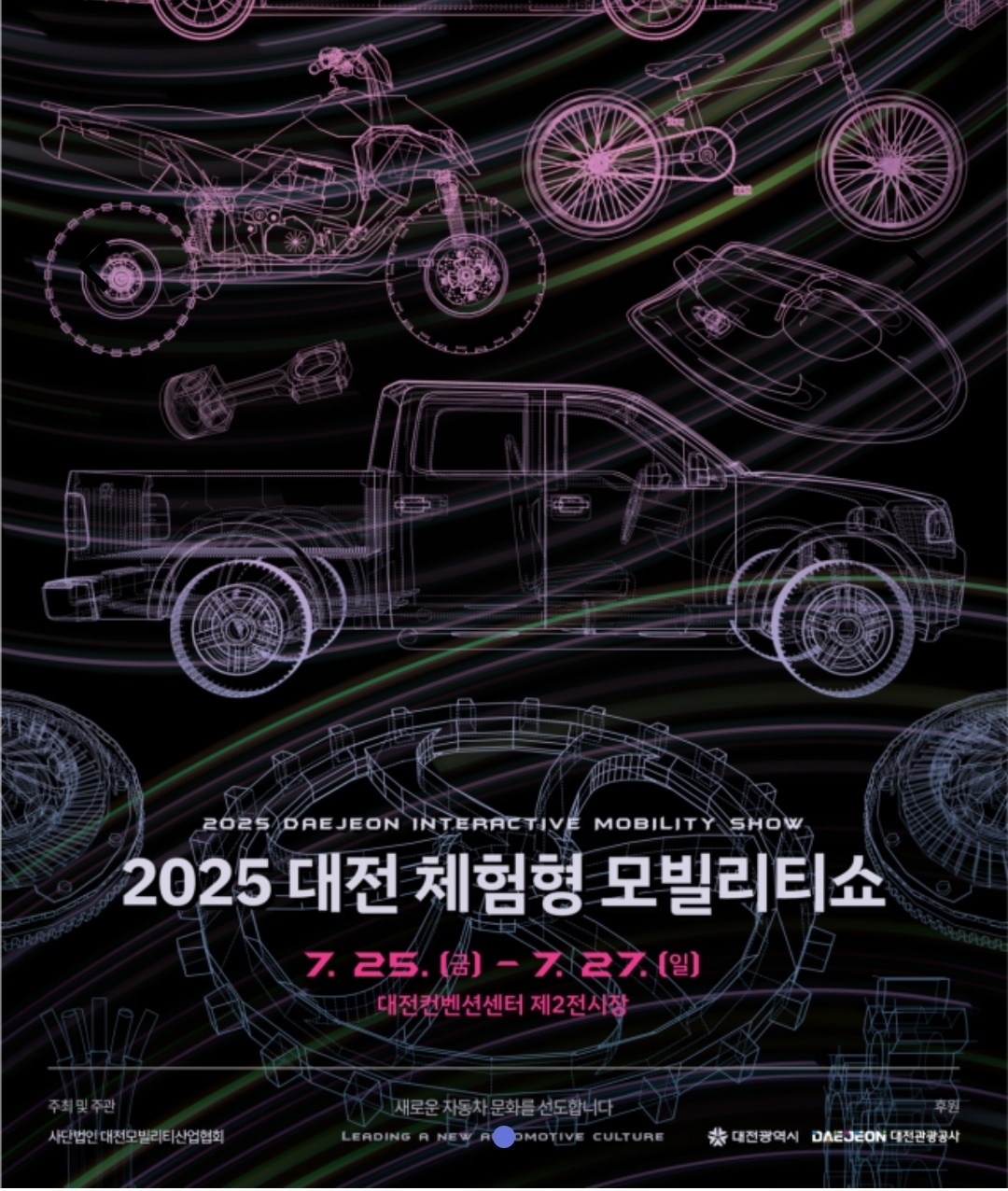 이번 2025 대전 체험형 모빌리티쇼는 단순한 전시를 넘어 미래 모빌리티를 직접 체험하고 즐길 수 있는 기회의 장입니다. 모빌리티 산업의 최신 흐름을 한눈에 확인하고, 친환경 차량 및 혁신 기술을 체험하며 새로운 자동차 문화를 선도하는 대전에서 뜻깊은 시간을 보내시기 바랍니다. 많은 관심과 참여 바랍니다.