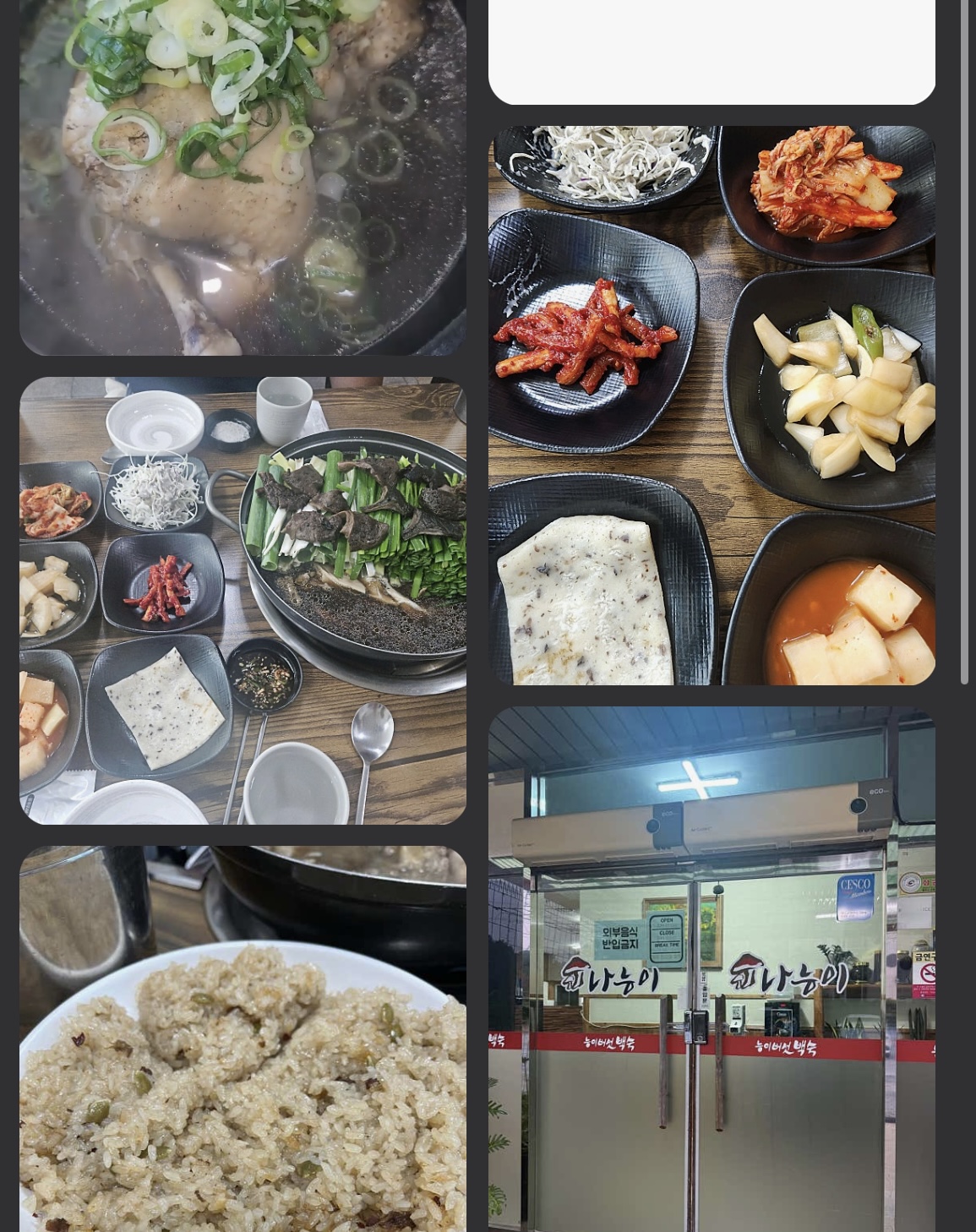 다음에는 친구와, 가족과, 회사 동료와 다시 한 번 방문해, 오리백숙과 닭백숙을 반반 시켜 서로의 그릇에 국물을 덜어 먹으며, 저희 가족만의 특별한 ‘이상한 식당’ 기록을 만들어 보고 싶네요.
