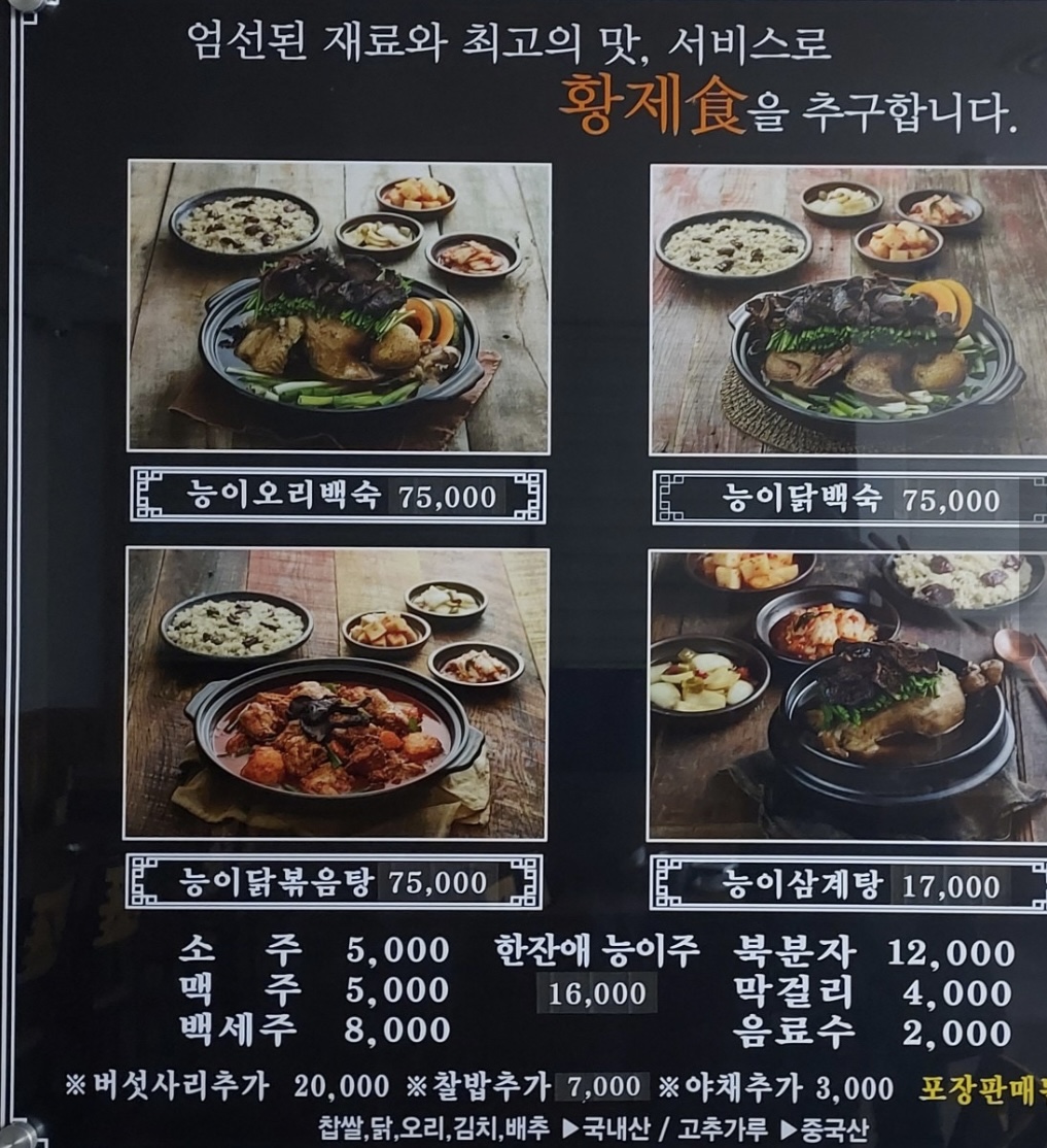 가족 모두의 건강까지 챙기자는 생각에, 기왕이면 제일 대표메뉴, 능이버섯닭백숙 75,000원, 3~4인분을 시켰습니다.
