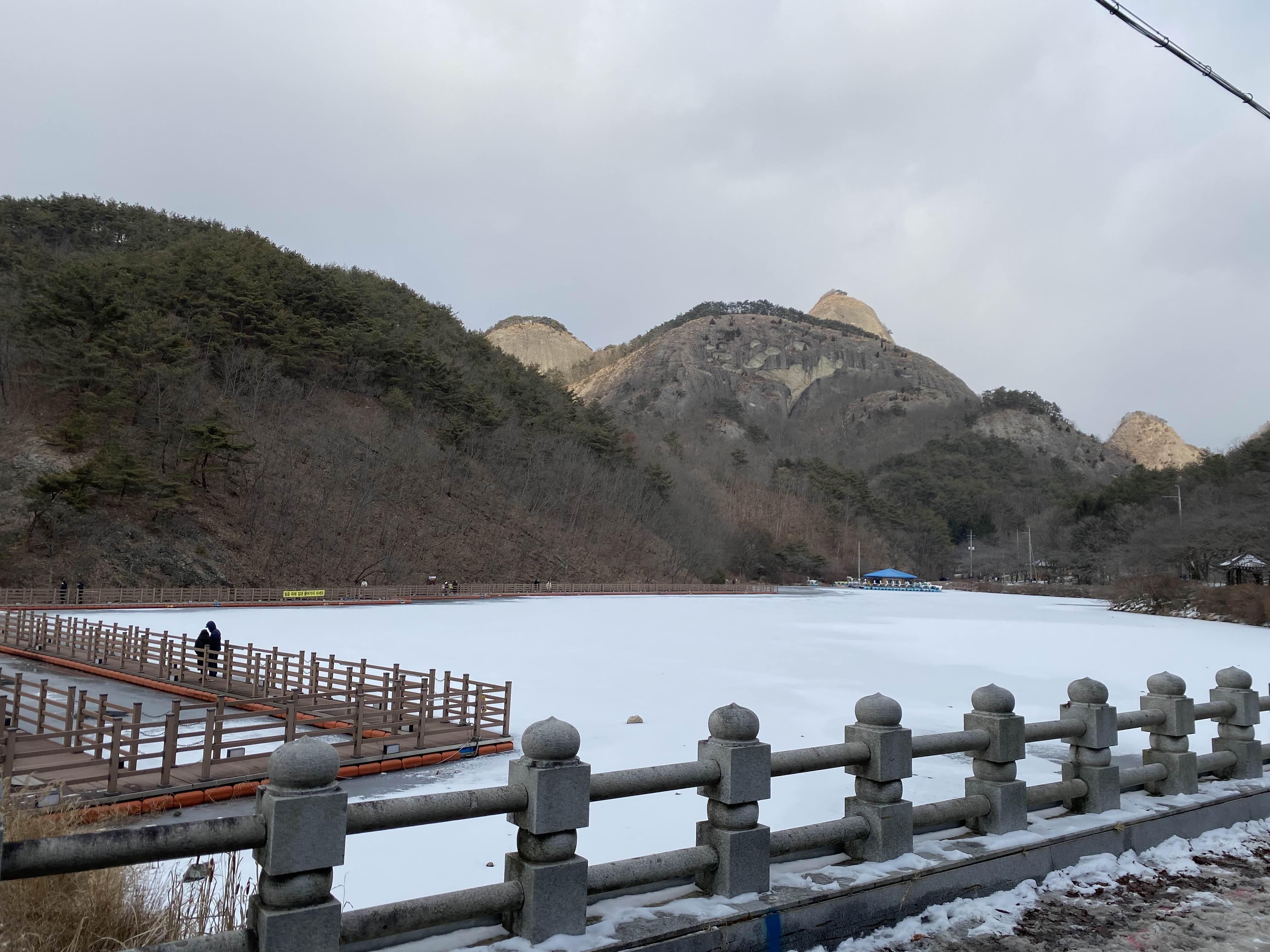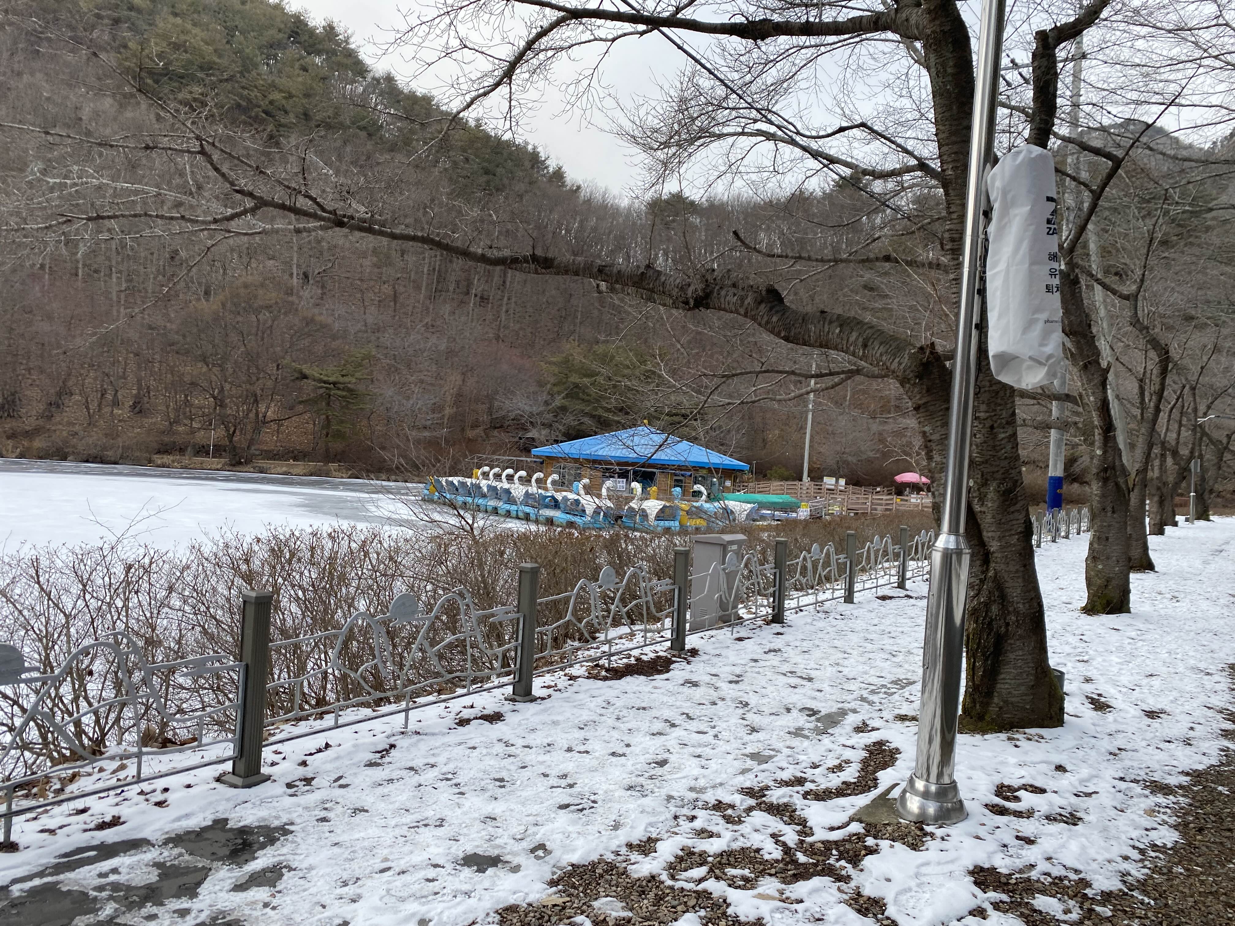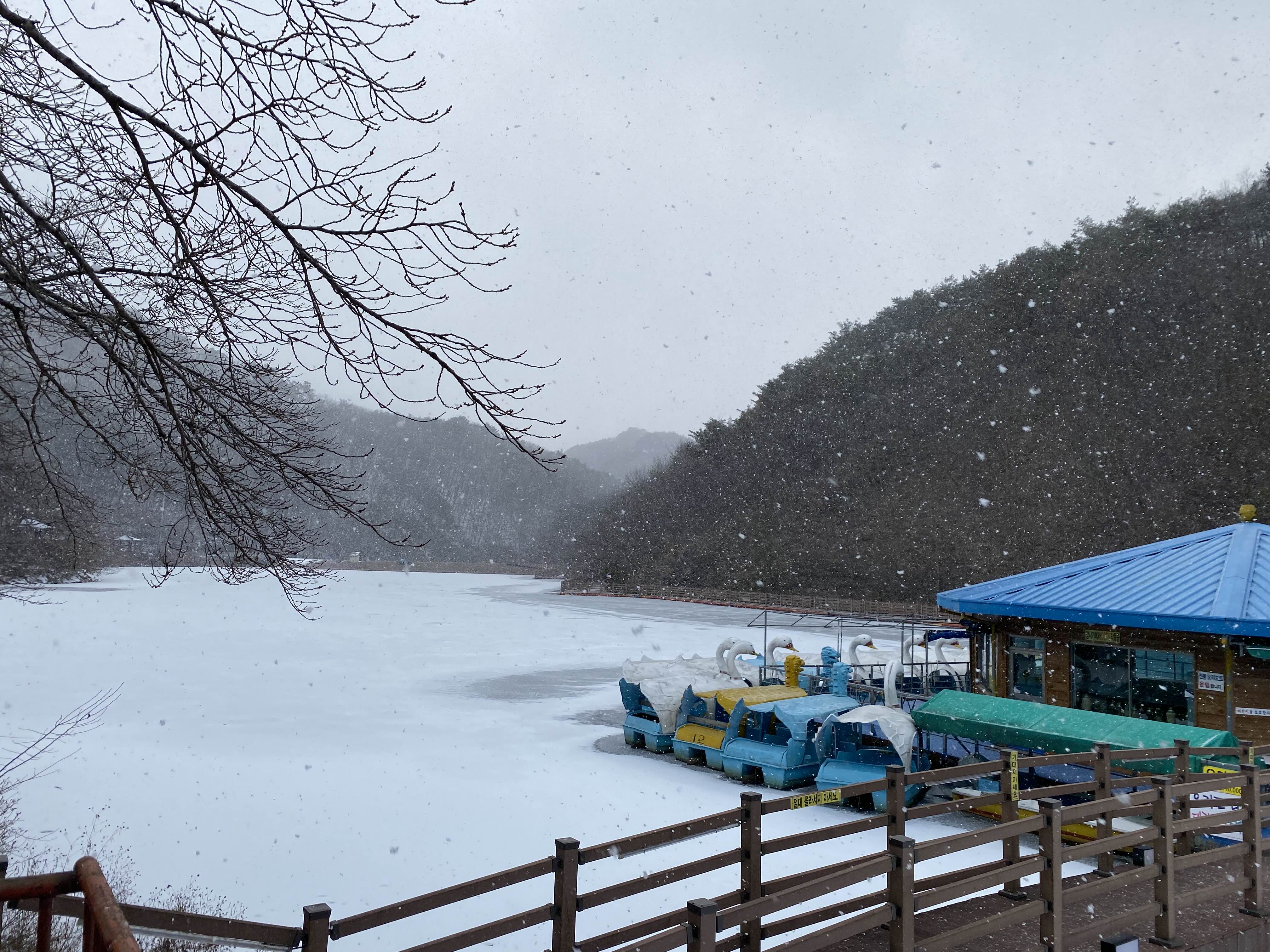이날은 눈이오고 추워서 얼음이 돼버린 호수