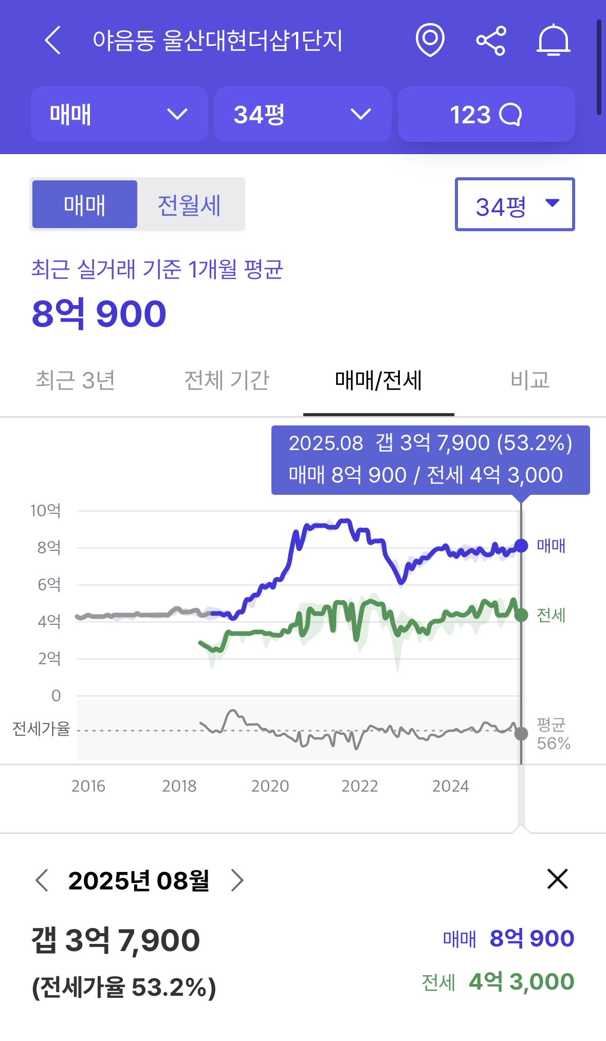 울산 부동산 시장은 최근 몇 년간 강세와 약세가 혼재했다. 2024년 기준, 남구·동구 등 신도심은 재개발 및 인프라 개선 효과로 가격이 상승한 반면, 도시 외곽·고령화 지역은 가격이 하락하거나 정체를 보였다[6]. 2025년 들어서도 남구·동구 등 핵심 생활권은 꾸준한 수요를 보이고 있으며, 저층·노후 아파트 단지와 신축 프리미엄 아파트 단지 간 격차가 점점 벌어지는 모습이다. 실제 2025년 2분기 울산 아파트 매매가격은 전년대비 1.3% 오르는 등 소폭 반등세를 보이고 있다[7]. 대체로 안전자산을 선호하는 투자 트렌드와 더불어, 대형 개발사업(MASGA, 도시재생 등)에 대한 기대감이 소폭 반영된 결과로 해석된다.