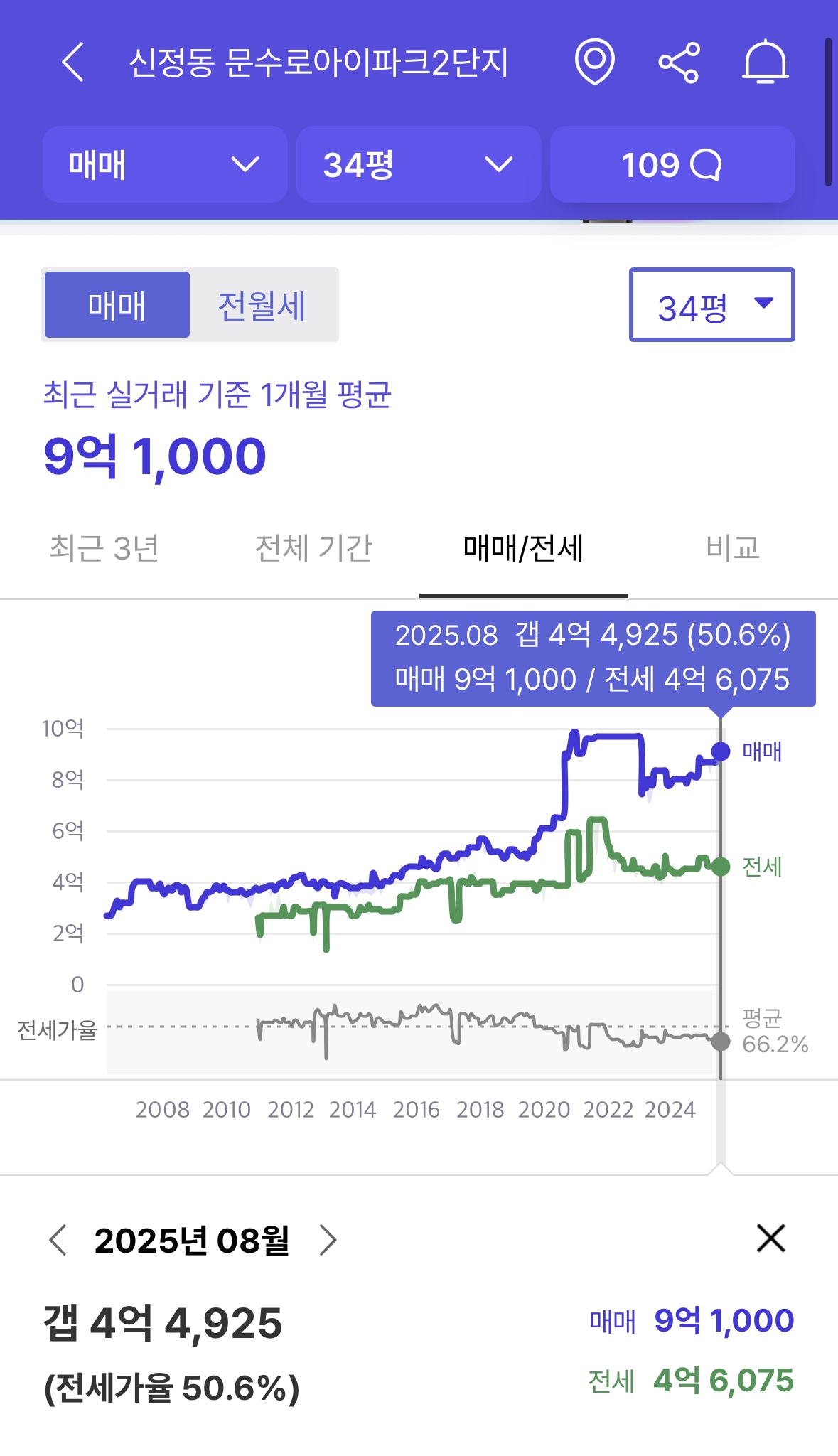 84~147㎡ 대표 평형, 2024년 말 10억~12억 거래(101~114㎡), 2025년 초 실거래 8.4억~8.8억(보급형 평형), 2025년 6월 기준 실제 매매 9.8억(84㎡, 8층), 5억(전세, 85㎡) 등[15][16][17].