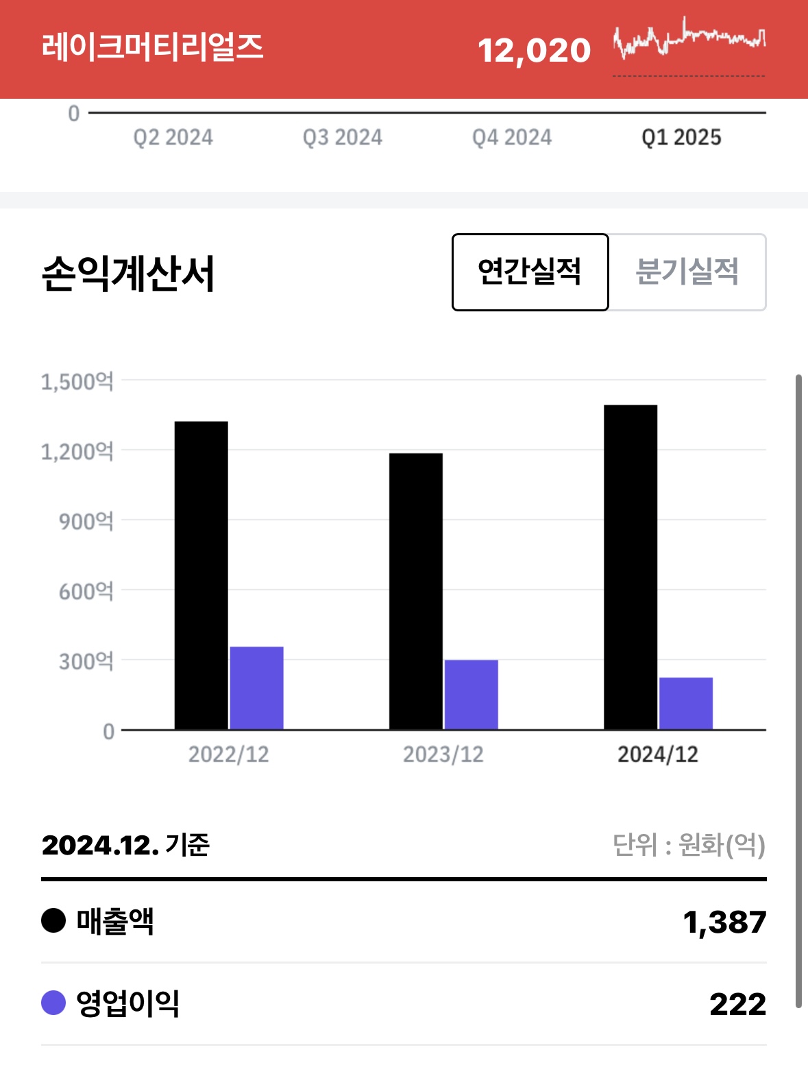 [7] 레이크머티리얼즈 작년 영업이익 222억원…전년 대비 24.9% https://www.yna.co.kr/view/AKR20250210094800527
