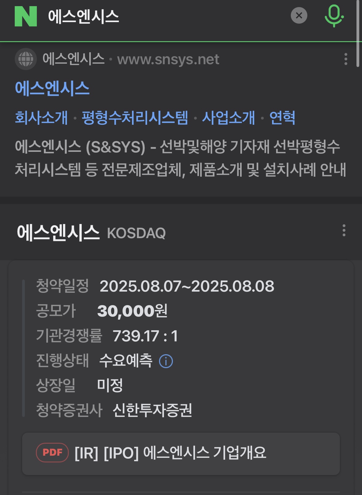 [1] 에스엔시스 - 든든 공모주 청약 일정, 분석, 예상 수량 https://ipo.dndn.io/A0008Z0