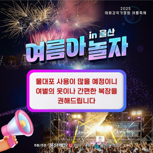 2025년 여름, 울산은 ‘시민과 함께하는 울산형 한여름 축제’라는 이름 아래 찬란하고 흥미로운 각종 행사로 시민들과 관광객 모두를 반기고 있습니다. 울산의 대표 명소와 도심 곳곳에서 펼쳐지는 이번 여름 행사는 남녀노소, 가족, 어린이, 청년, 직장인에 이르기까지 정말 다양한 계층을 골고루 아우릅니다. 단순한 이벤트를 넘어, 즐거움과 배움, 소통, 사랑, 힐링까지 담아내는 울산 여름행사의 매력! 아래에서 행사별로 소개합니당~!