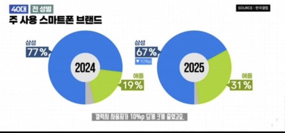 - 공식 통계는 여전히 ‘20대 아이폰, 40대 갤럭시’지만, 변화의 조짐을 간과해서는 안 된다 대세는 그대로이지만, 일부 세대 내에서 갤럭시 재평가와 아이폰 경험 확대가 동시에 일어나고 있다는 점은 시장 변화의 싹으로 볼 수 있습니다.