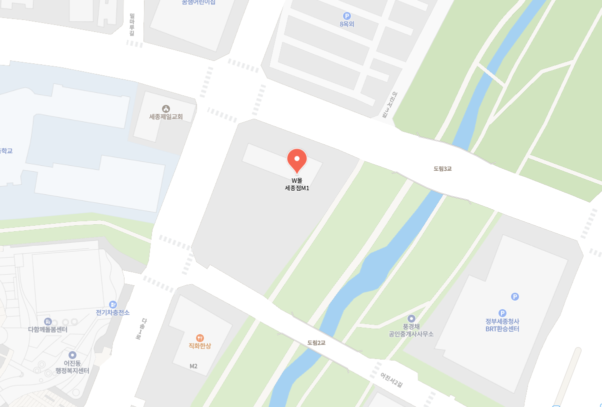 - 위치: 정부세종청사 남측, 어진동 엠브릿지 7, 8층 — 교통 중심지, 접근성 뛰어남