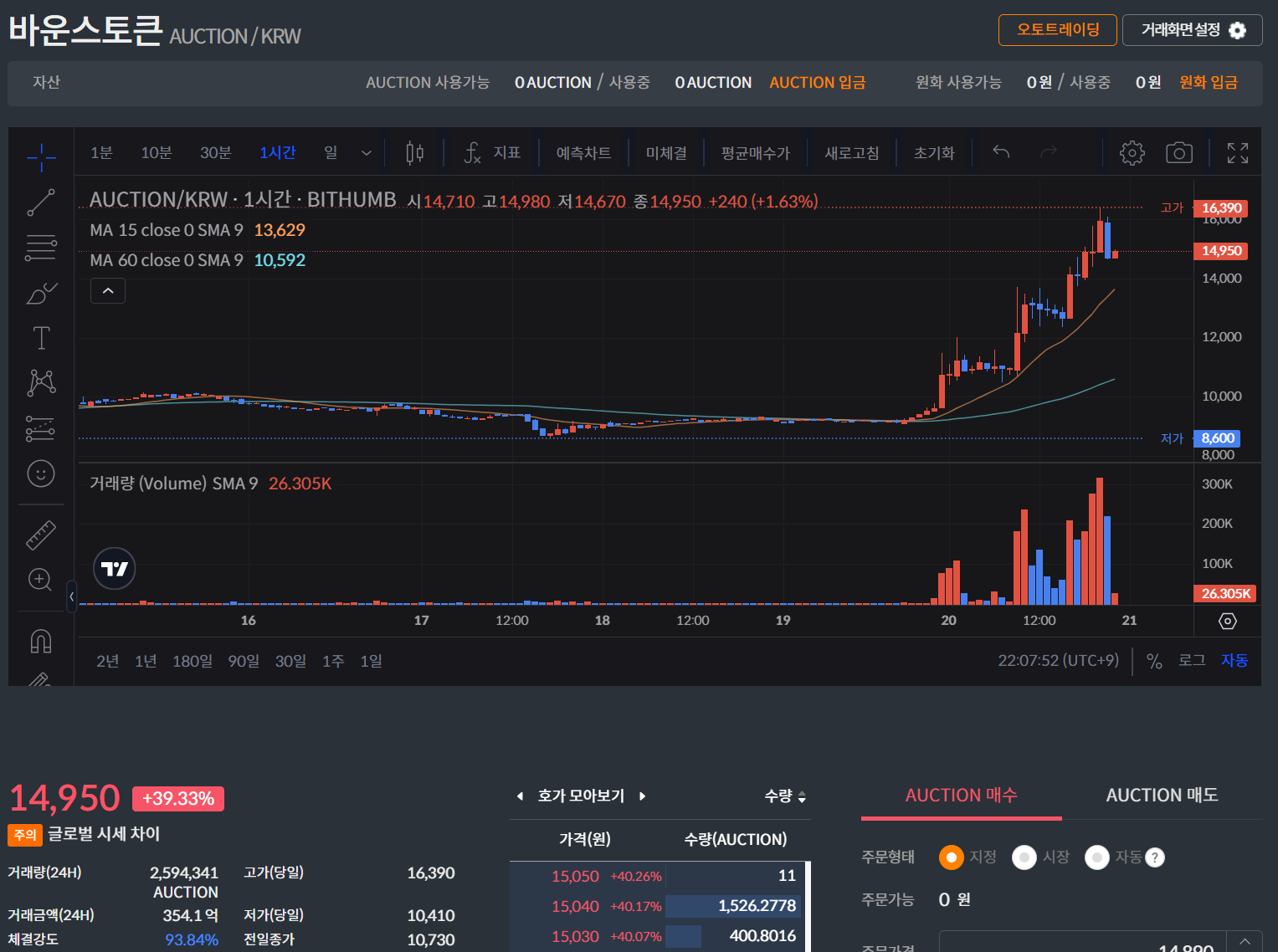 바운스 코인(AUCTION)은 세계 주요 거래소에 모두 상장되어 있어 글로벌 유동성이 매우 높다는 점이 특징입니다.
