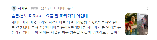 미국에서는 사전들이 앞다퉈 올해의 단어를 발표했다. Dictionary.com은 '67'(식스세븐)을 선정했다. 이는 슬랭으로 "완벽한 10 중 6~7점"을 뜻하는 완벽주의 포기 선언. 소셜미디어에서 "좋지도 나쁘지도 않은, 그냥 괜찮은" 걸 받아들이는 태도를 상징한다. 팬데믹 후유증과 인플레이션으로 "완벽 추구는 사치"라는 현실 인식이 퍼졌다. ABC뉴스에 따르면, 이 표현 검색량이 300% 폭증했다.