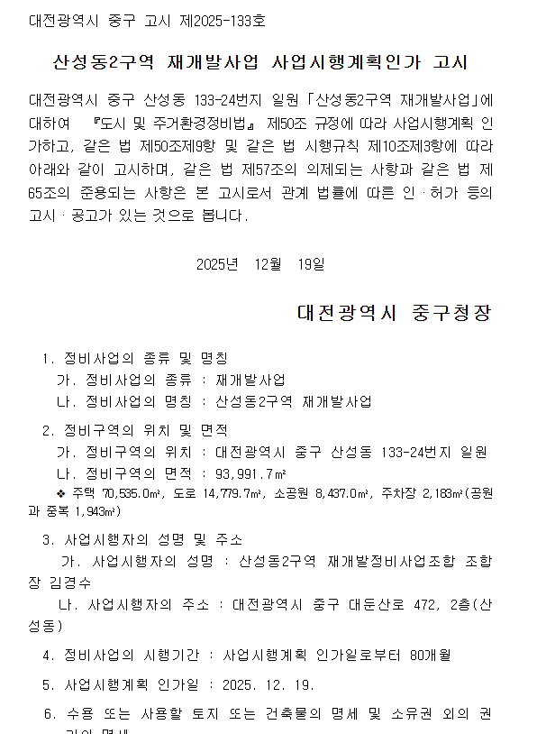 대전 중구 산성동2구역 재개발사업 | 산성동2구역 사업시행계획 인가 고시 | 본격 착공 준비지역 & 부동산 2025. 12. 23. 09:28728x90300x250