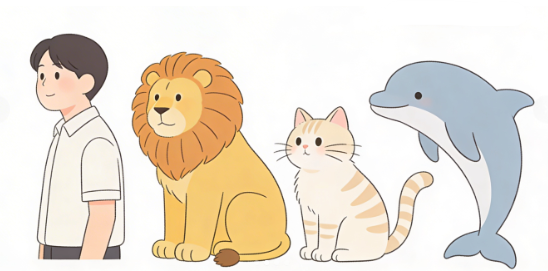 - Mammalia (포유강): 모유 수유, 털, 체온 유지 기능. 인간, 코끼리, 고래가 포함됩니다.