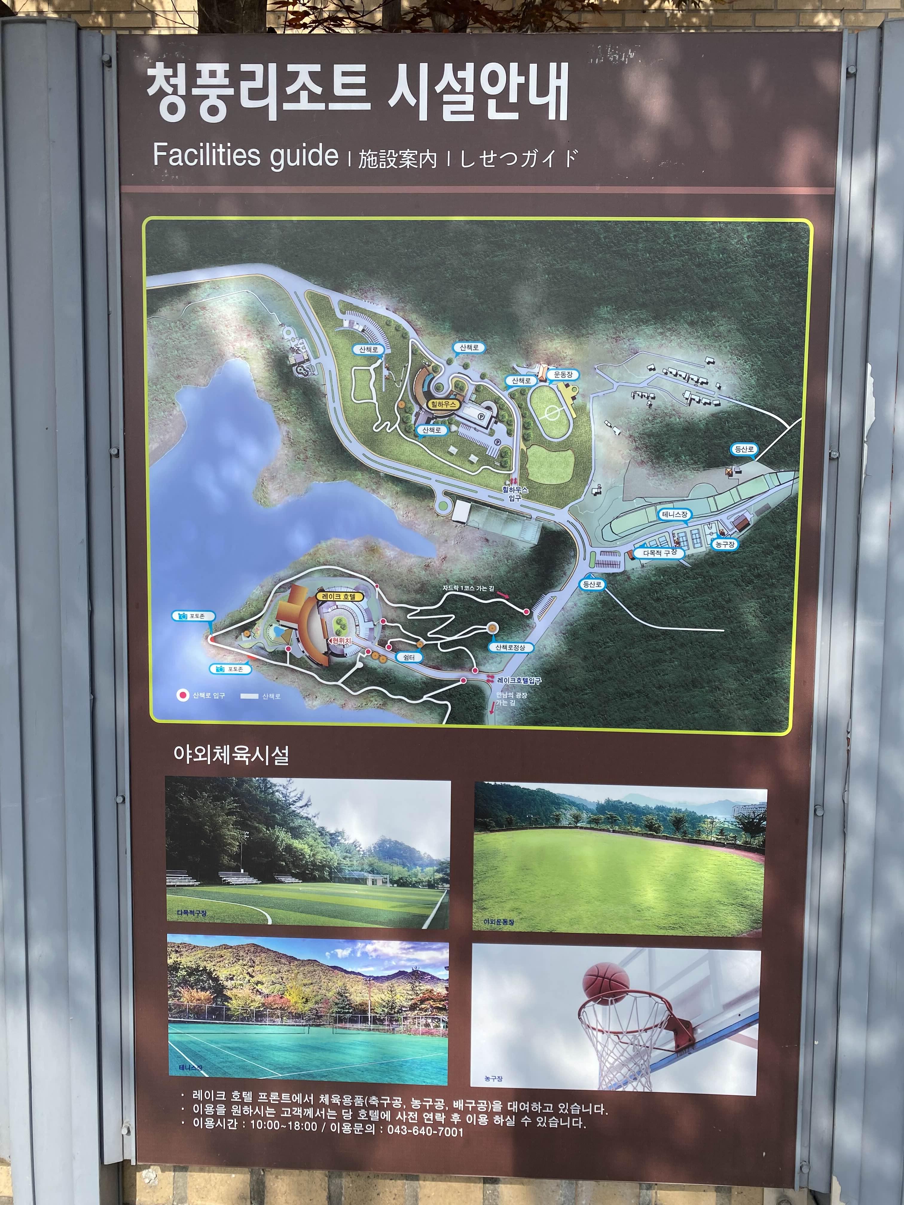 특징: 청풍호를 끼고있어 풍경이 좋고 리조트 길가로 둘레길이 잘 조성되어있음. 그리고 케이블카와 같은 주변 관광지와 가까움.