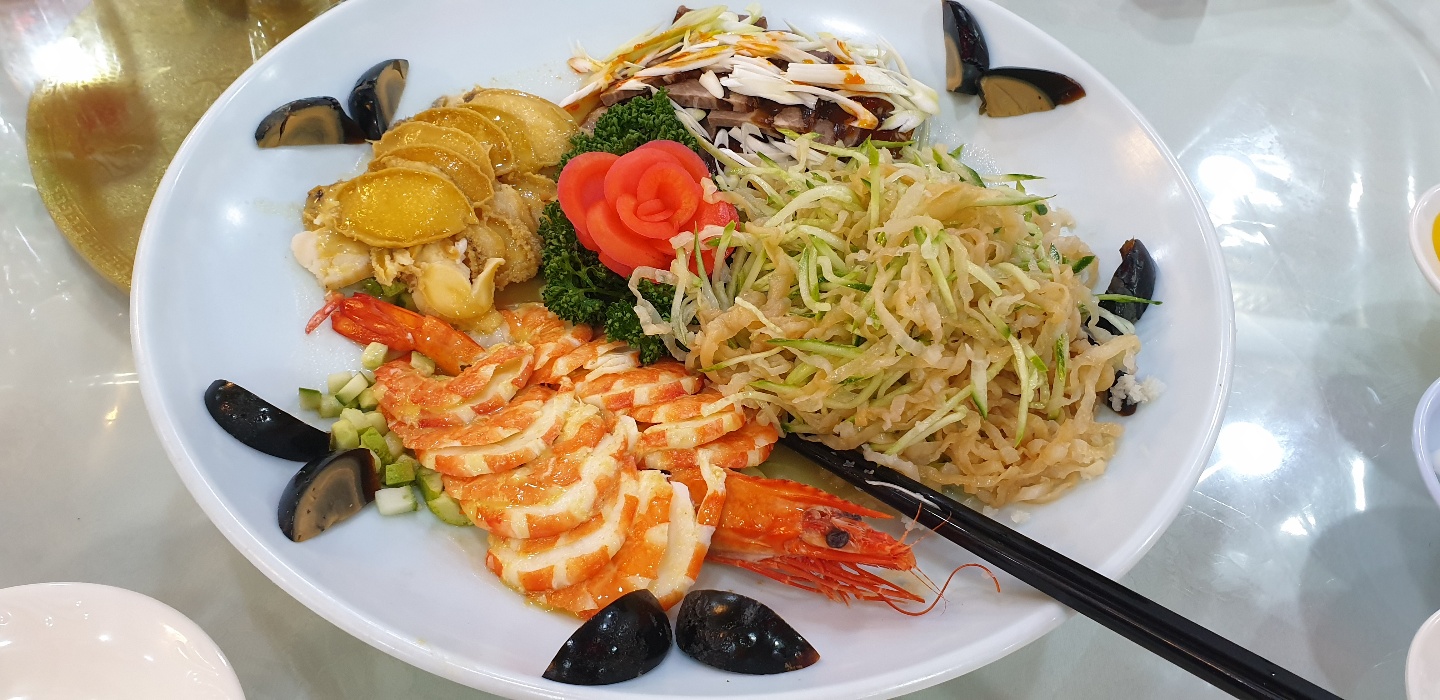 태화장 오품냉채 오품냉채는 새우와 전복 그리고 삭힌 오리알과 냉채들을 섞어서 먹는다