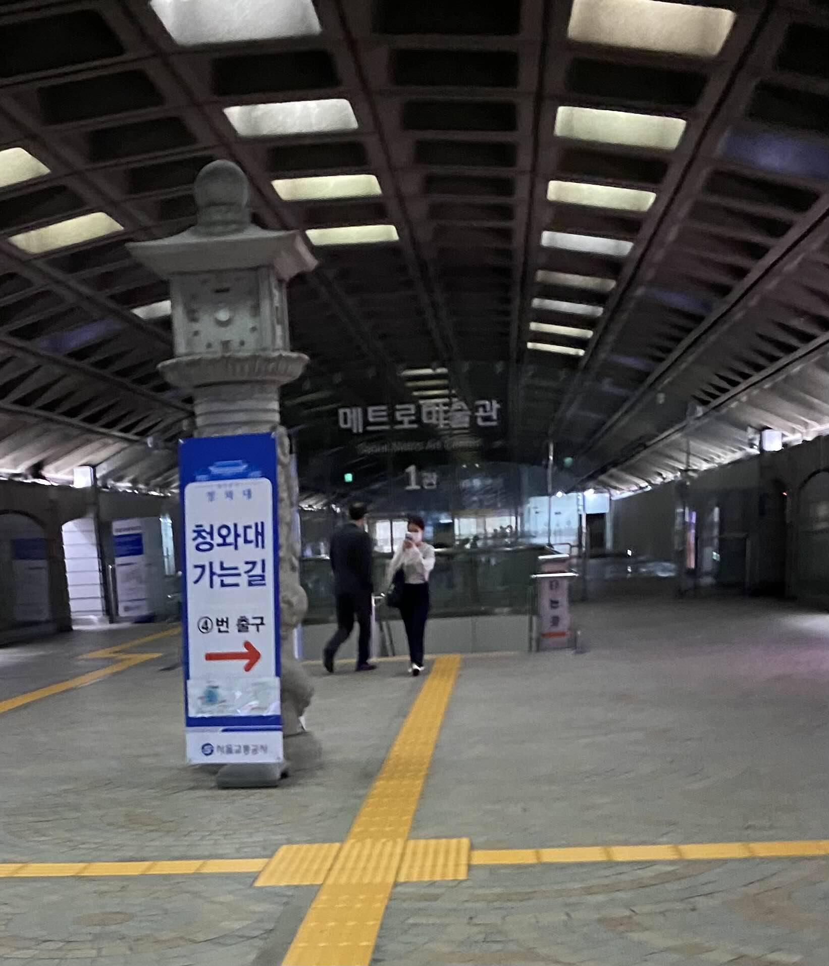 청와대와 가장 가까운 경복궁역에 도착하면 친절하게도 청와대 관람객을 위한 안내 알림이 많더라구요! 경복궁역 내리자마자 4번 출구로 안내해주는 스티커!