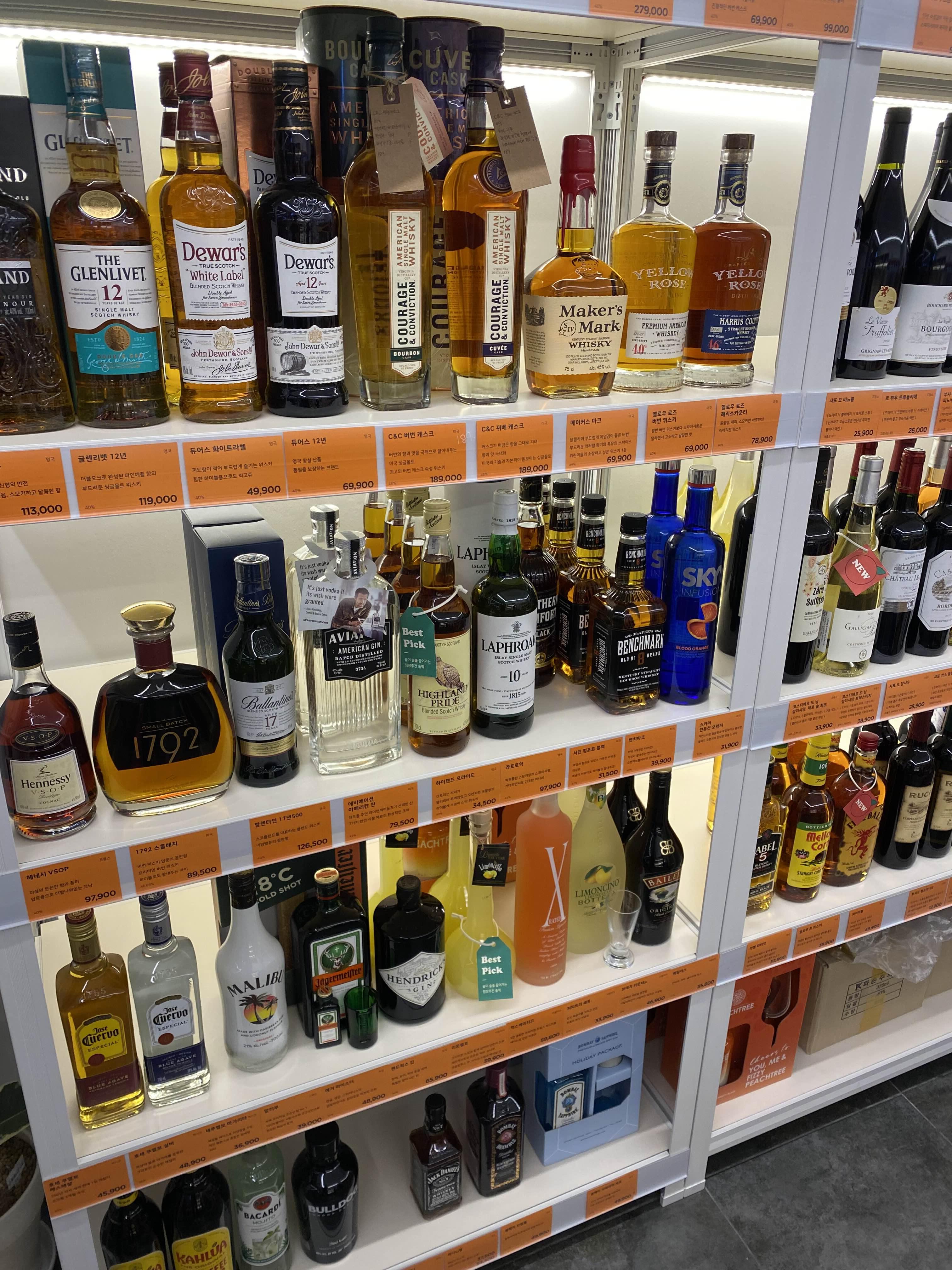 위스키류와 와인 그리구 꼬냑류 종류가 다양하게 판매하더라구요