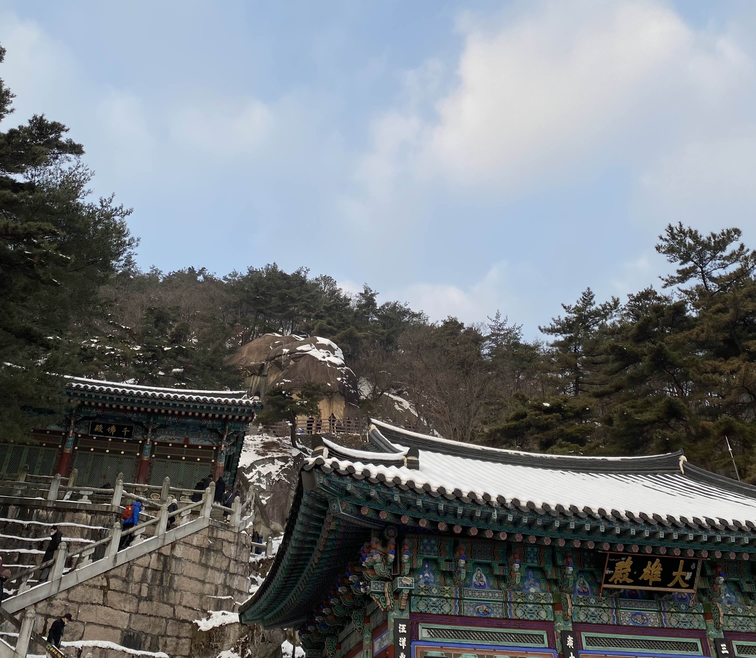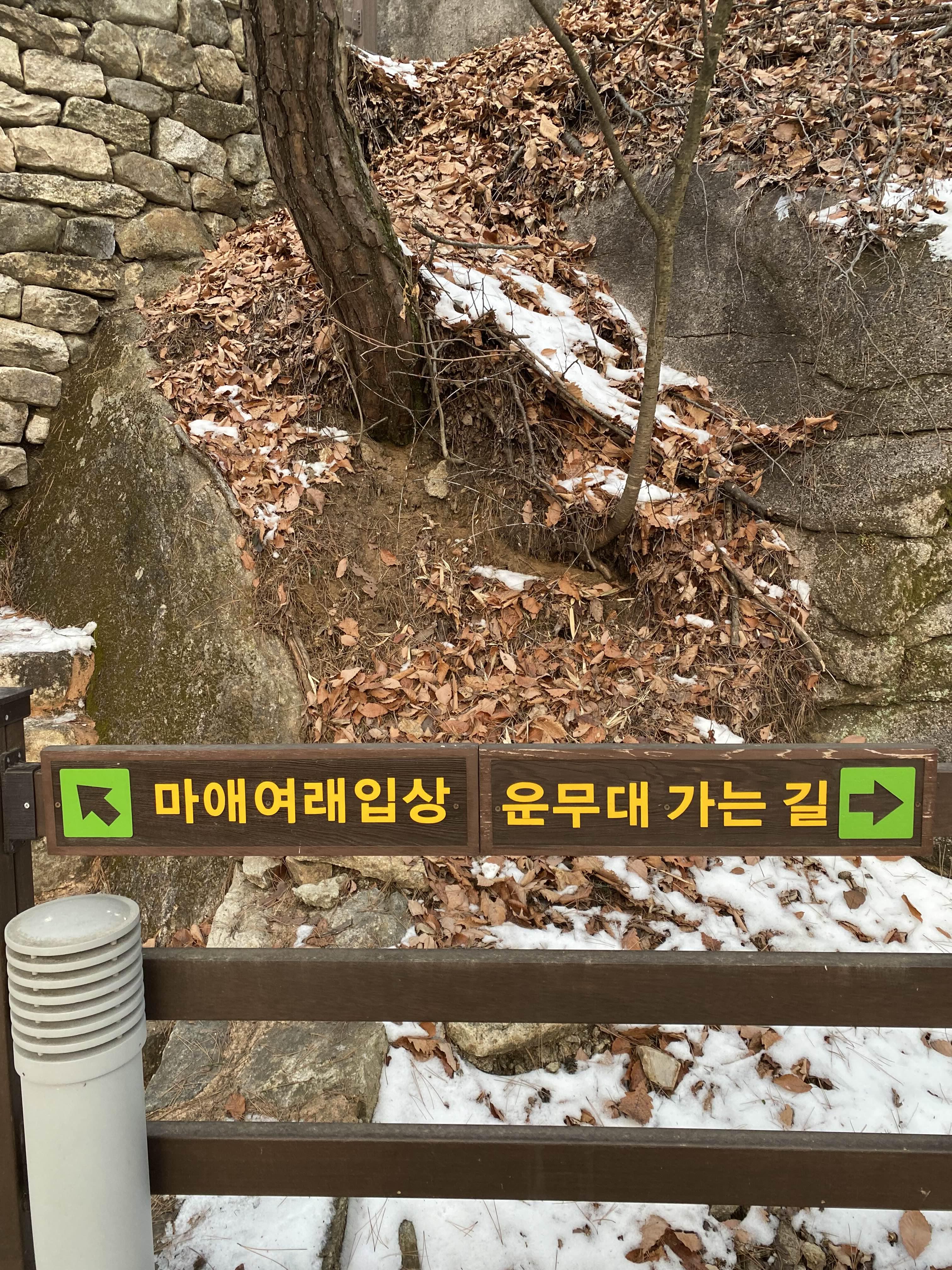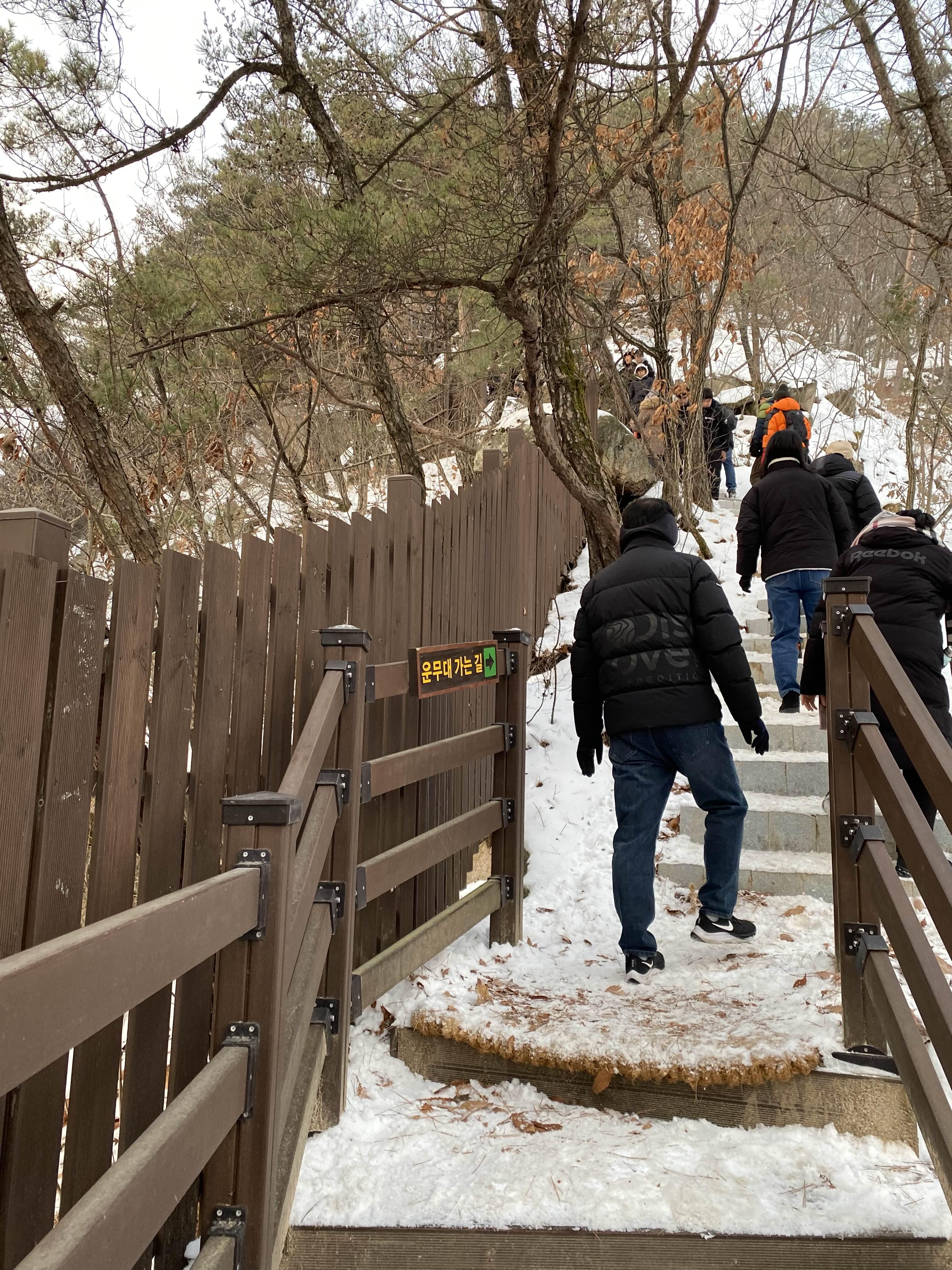 여기 이후부터는 계단이 얼어있고 눈이 쌓여있어 미끄러워요