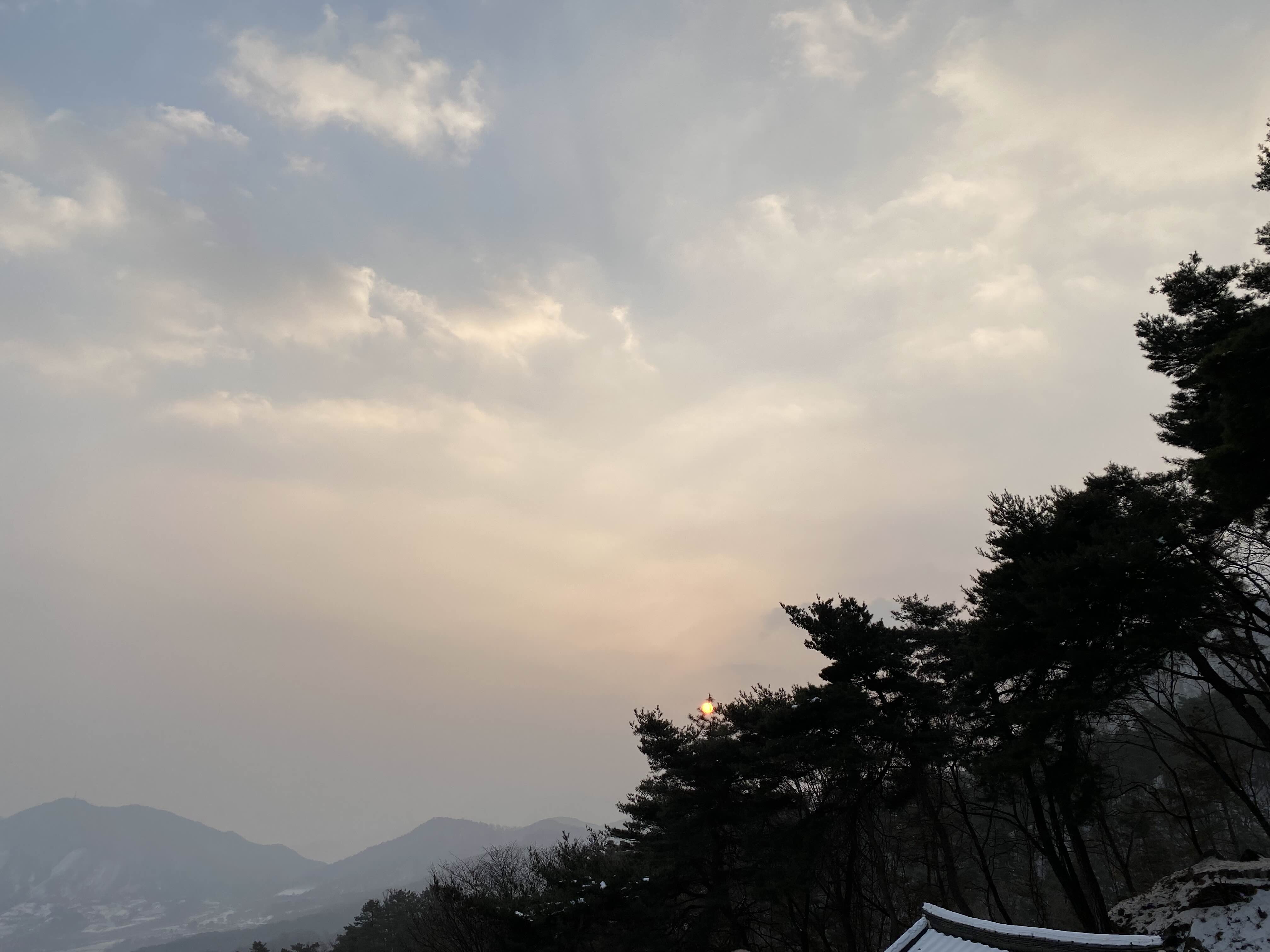 구름이 걷히고 어렴풋이 해가 떠오릅니다