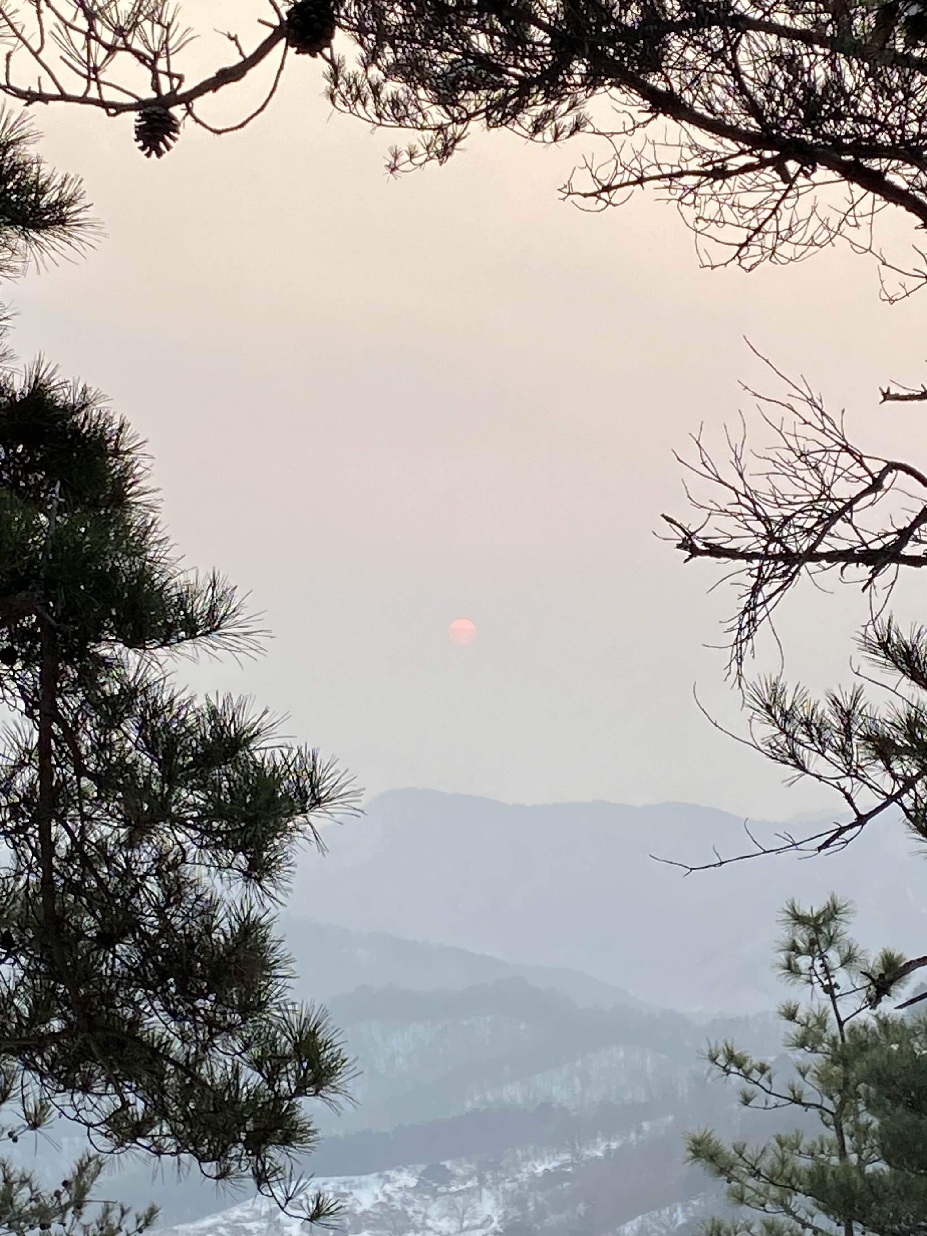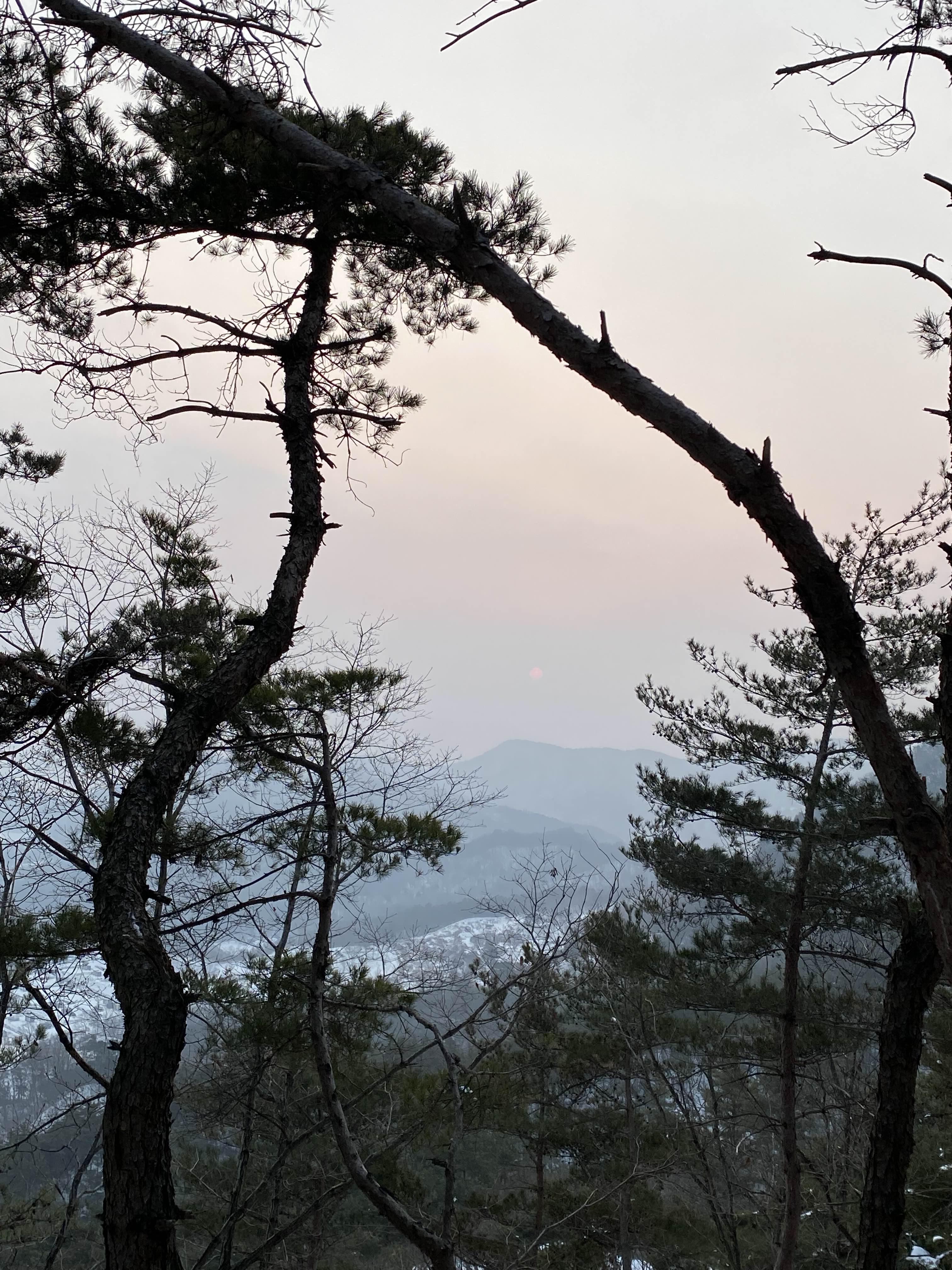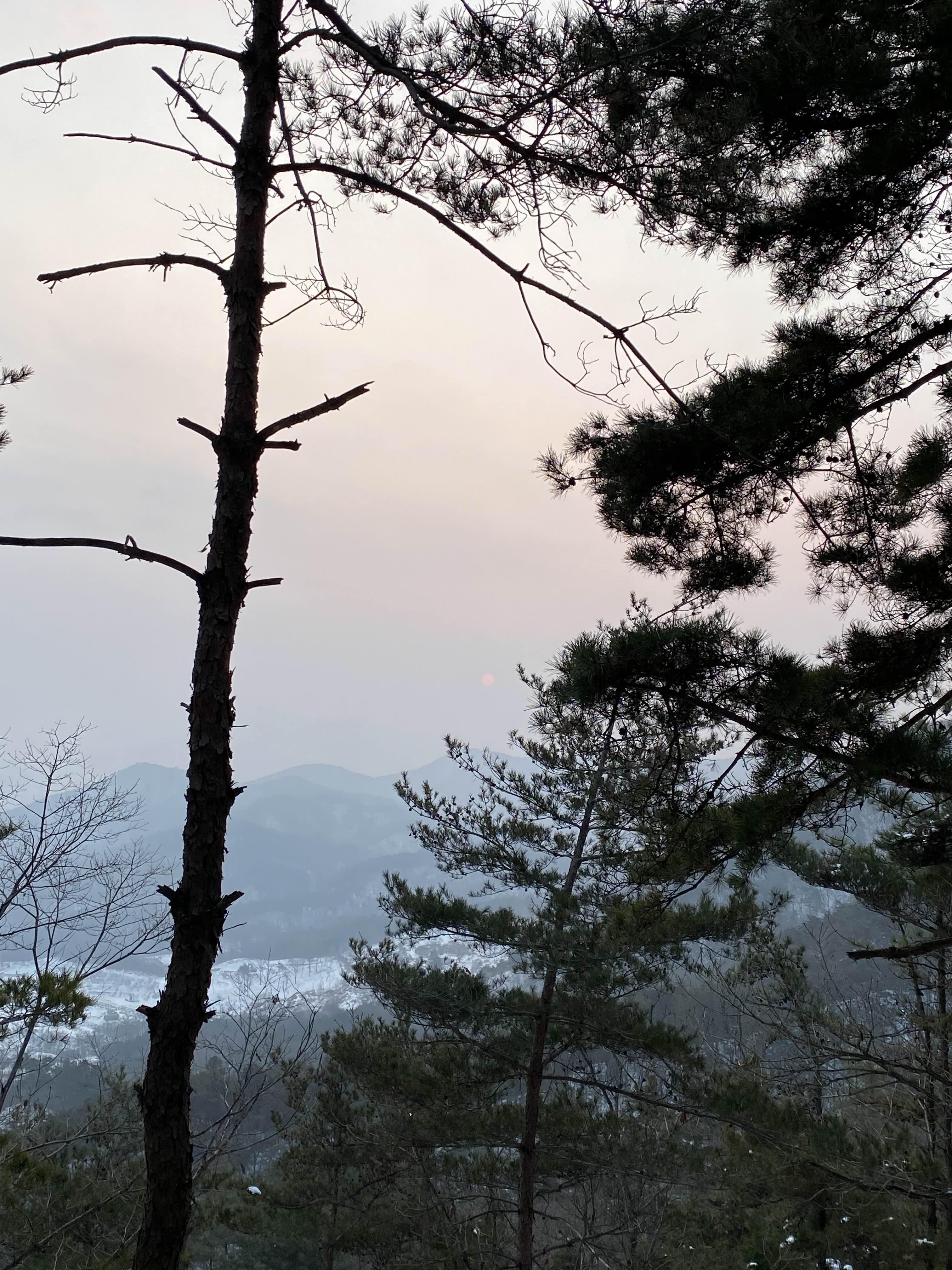 소나무에 걸친 해