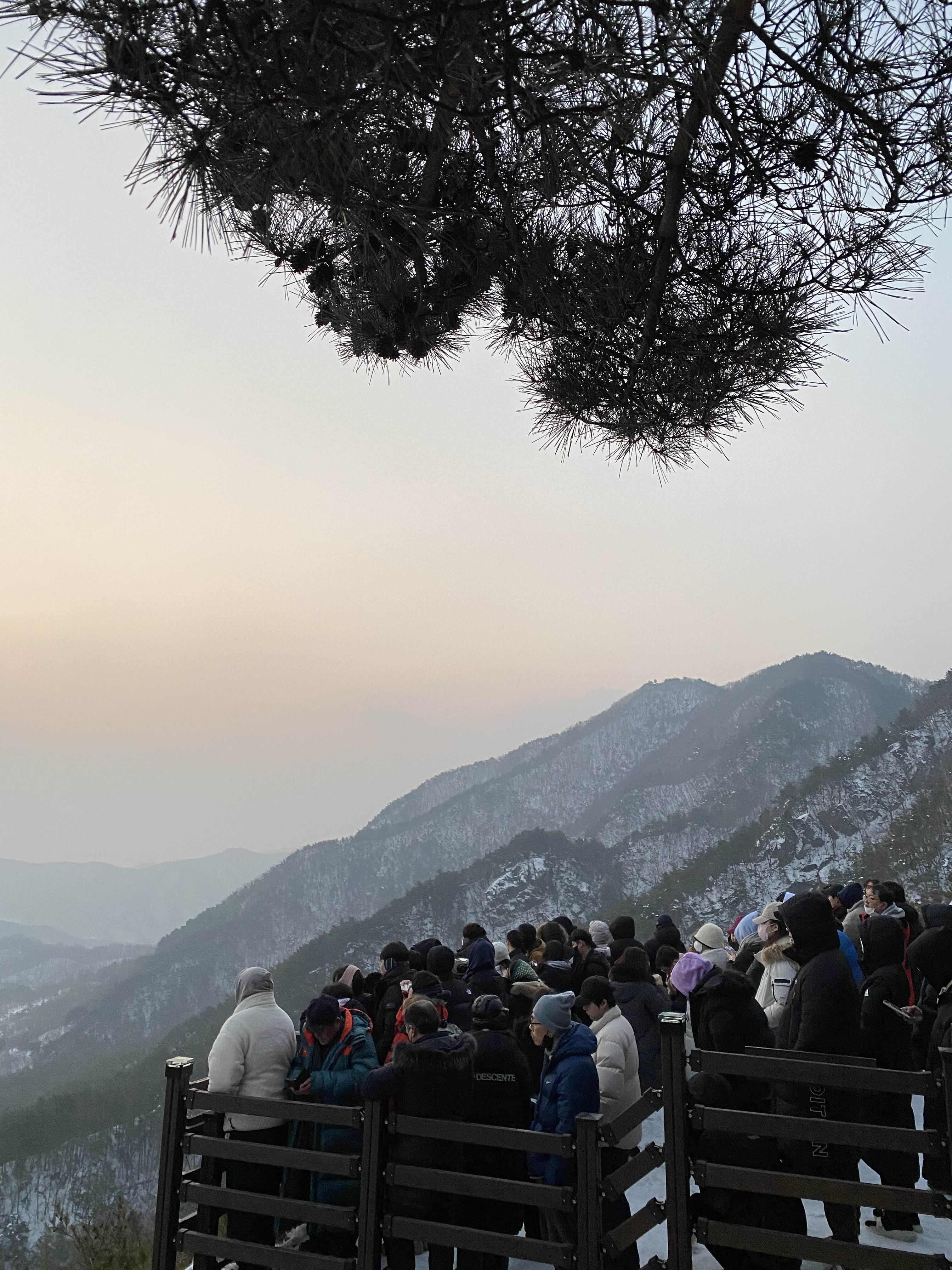 오지 않은 햇님을 기다리는 등산객들
