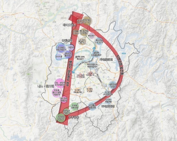 - 나노‧반도체 산업을 중심으로 우주항공, 도심교통항공(UAM) 등 첨단산업 클러스터로 조성[2]