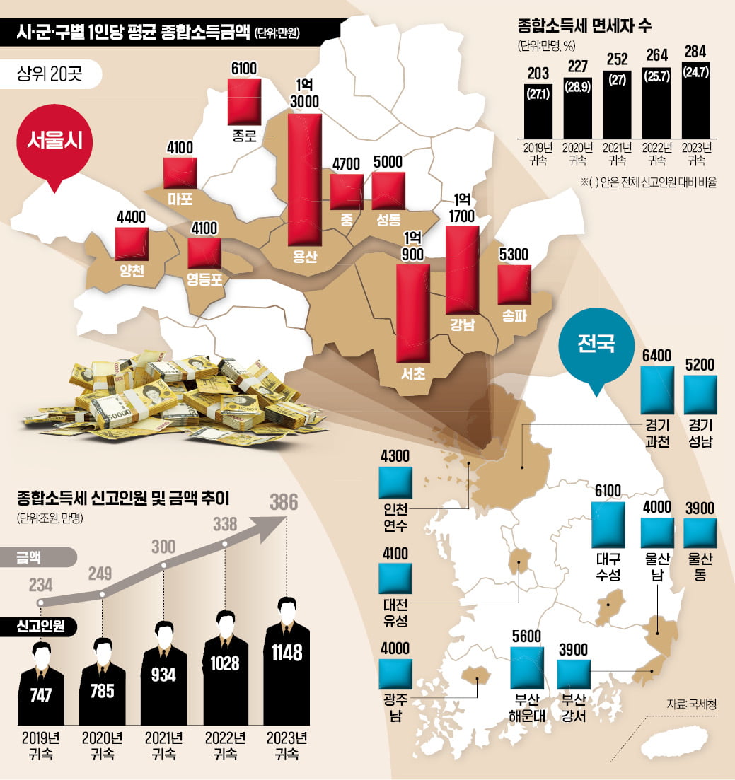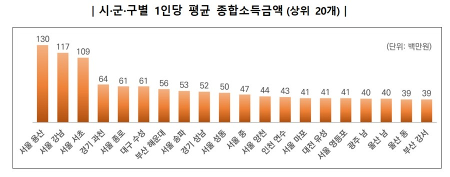 [1] “작년 종합소득 가장 높았던 곳, 강남구 아니고 여기”…1인당 1억3000 ... https://www.mk.co.kr/news/economy/11199648