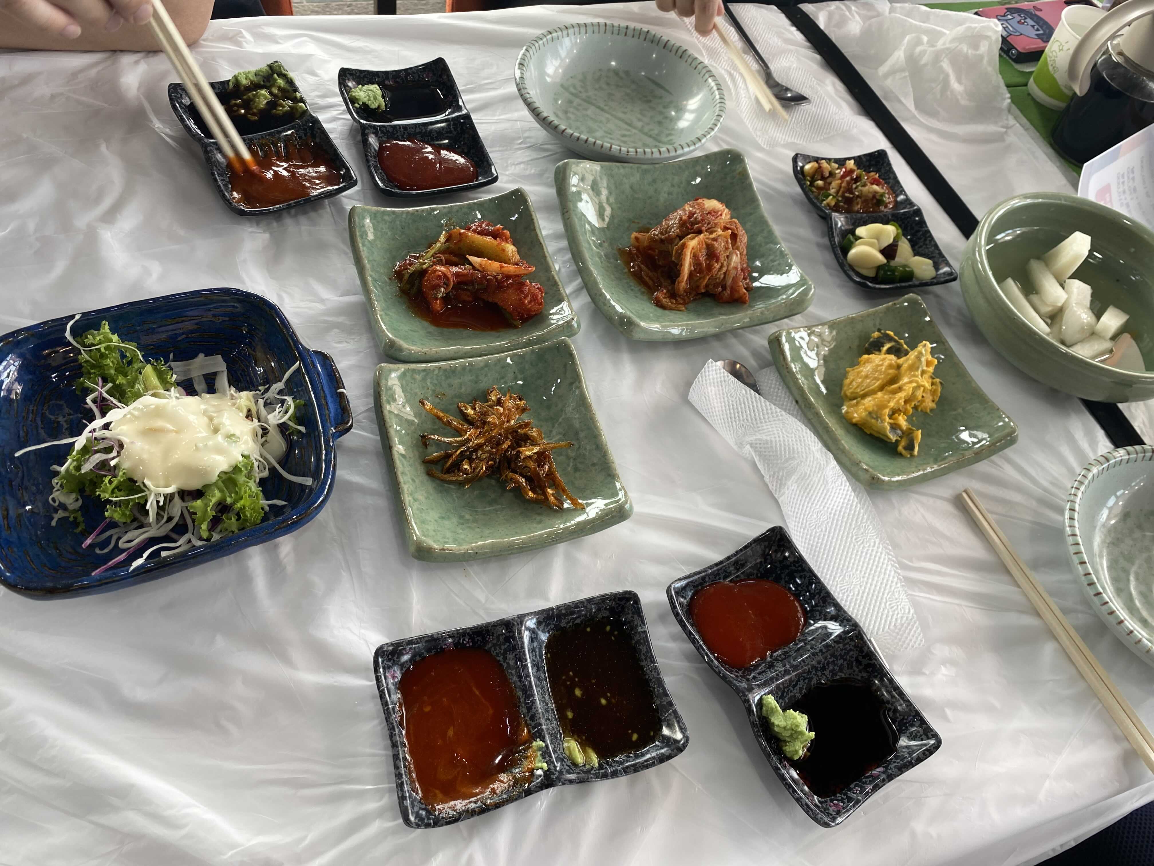 저희가 시킨 광어회+간장게장 4인세트의 기본 상차림이 나왔어요.
