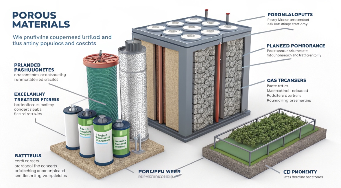 3차원 다공성 금속 구조체(예: 니켈 폼)는 전극 소재로 사용됩니다. 이 구조는 높은 전기 전도성과 기계적 강도를 제공하며, 리튬 이온의 빠른 이동 경로를 확보하여 배터리 수명과 충전 속도를 개선합니다[35].3. 환경 정화 및 분리 공정