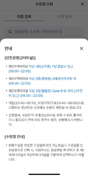 지정한 날짜에 인천공항의 선택한 우리은행 환전소를 방문합니다. 제1터미널의 경우 24시간 운영하는 환전소가 있어 심야 시간에도 이용 가능합니다.