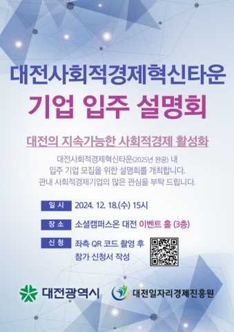 [3] '대전'사회적경제혁신타운 조성 사업자 선정 - 백제뉴스 http://www.ebaekje.co.kr/news/articleView.html?idxno=93503