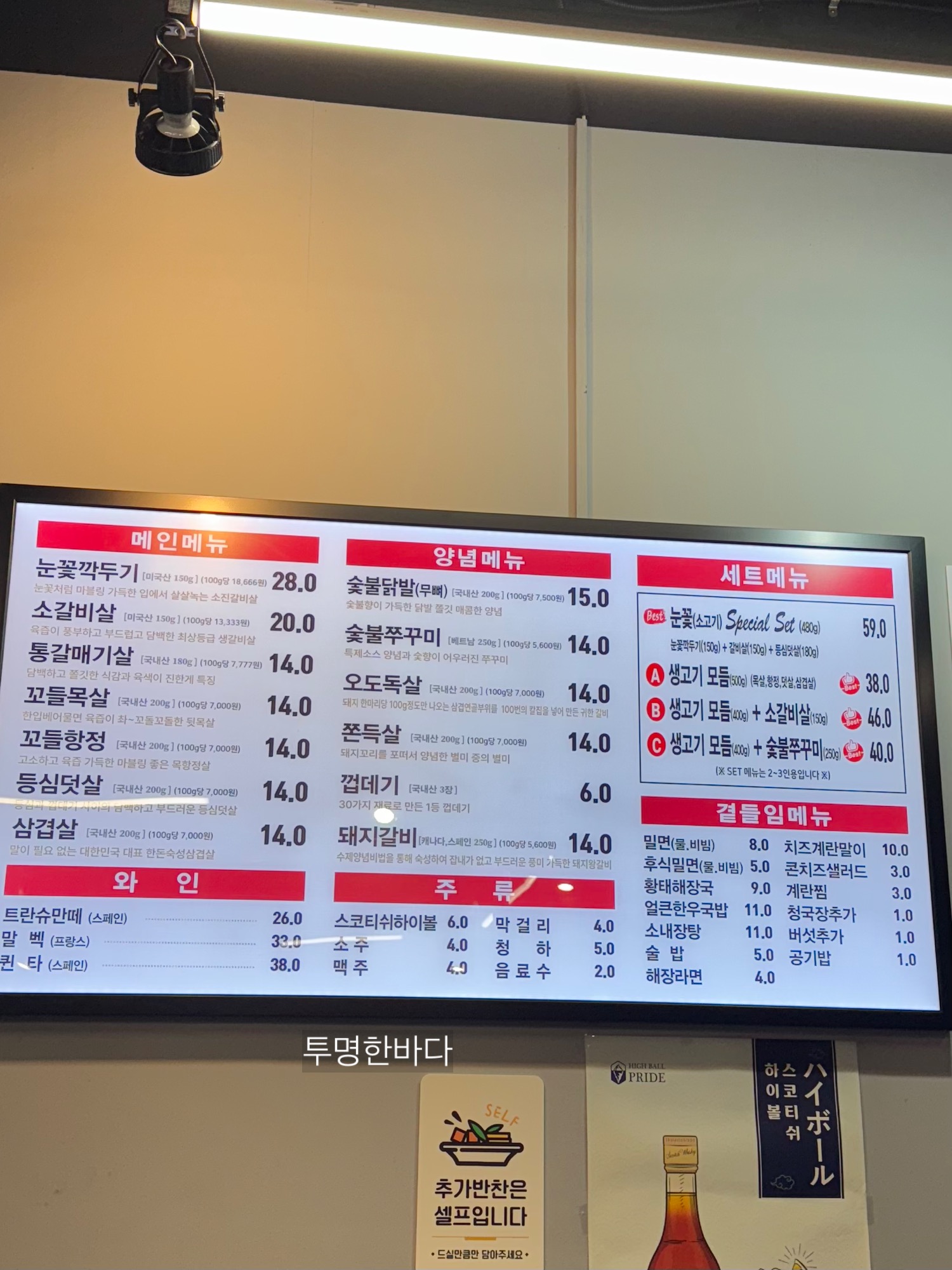 식껍 청주 성화점은 평범한 고깃집의 모습이지만, 평일 저녁에도 만석이 될 만큼 인기가 많았습니다.