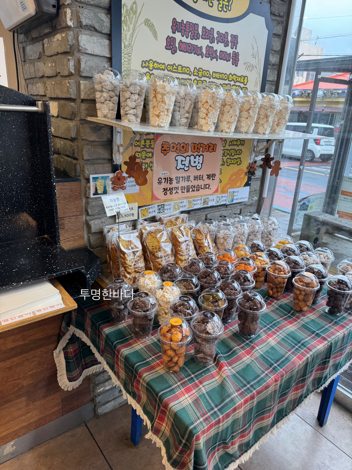 성산읍 중심가에 덩그러니 자리 잡은 제일성심당. 지도 앱에 ‘제일성심당’만 쳐도 바로 나온다. 외관부터 “나 빵집이오!” 하고 외치는 포스. 아침 7시부터 밤 10시 30분까지 빵을 굽고 있으니, 여행 일정에 맞춰 아무 때나 들러도 된다. 근처에 버스정류장도 있어 대중교통으로도 접근성 굿!