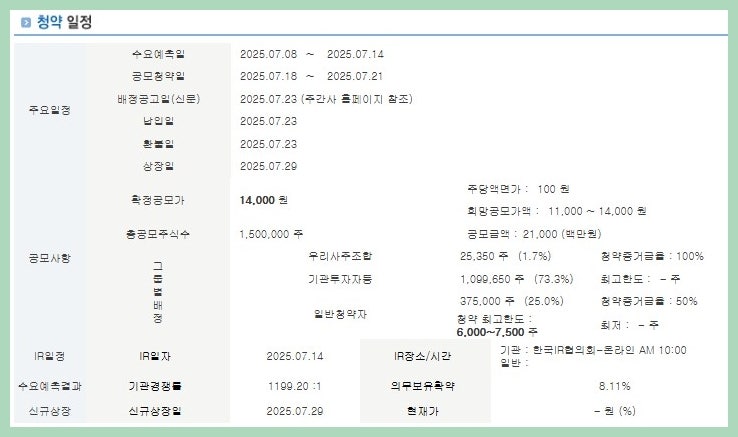 - 공모청약일:2025년 7월 18일(금) ~ 7월 21일(월)