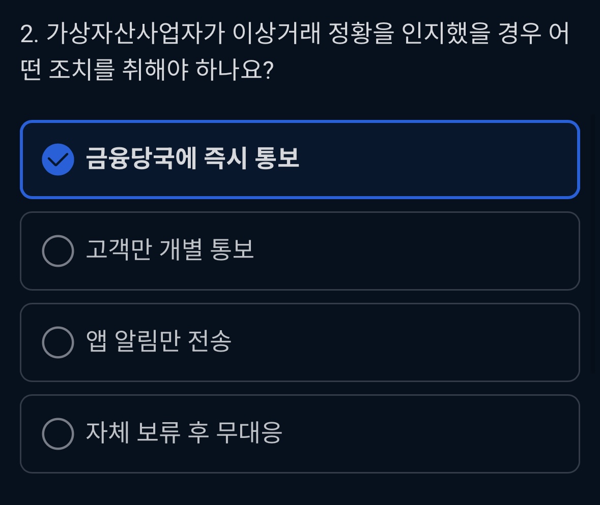 - 금융당국에 즉시 통보