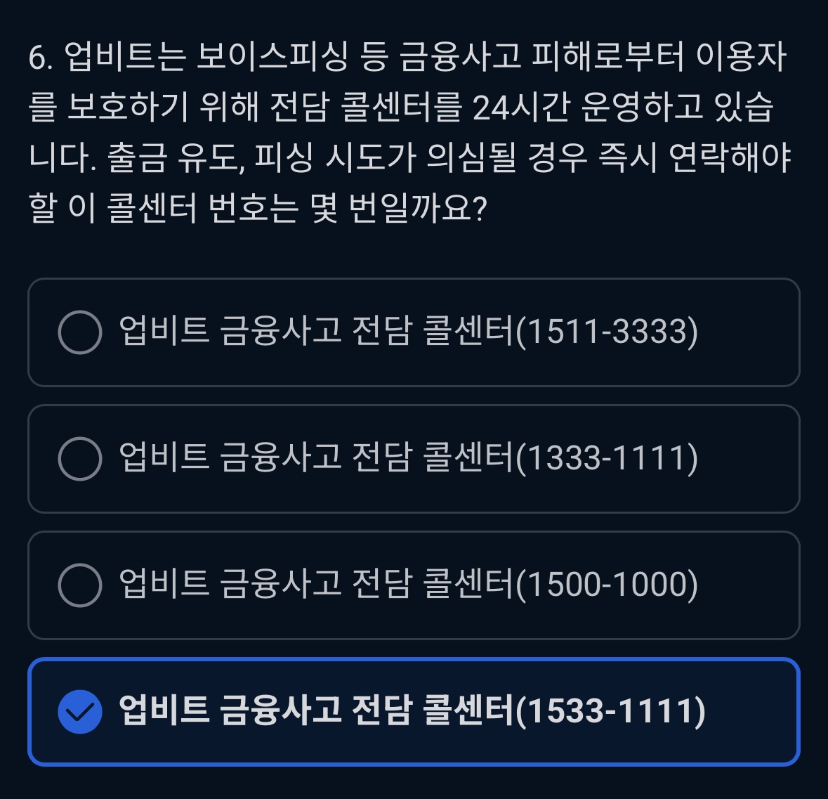 - 업비트 금융사고 전담 콜센터(1533-1111)