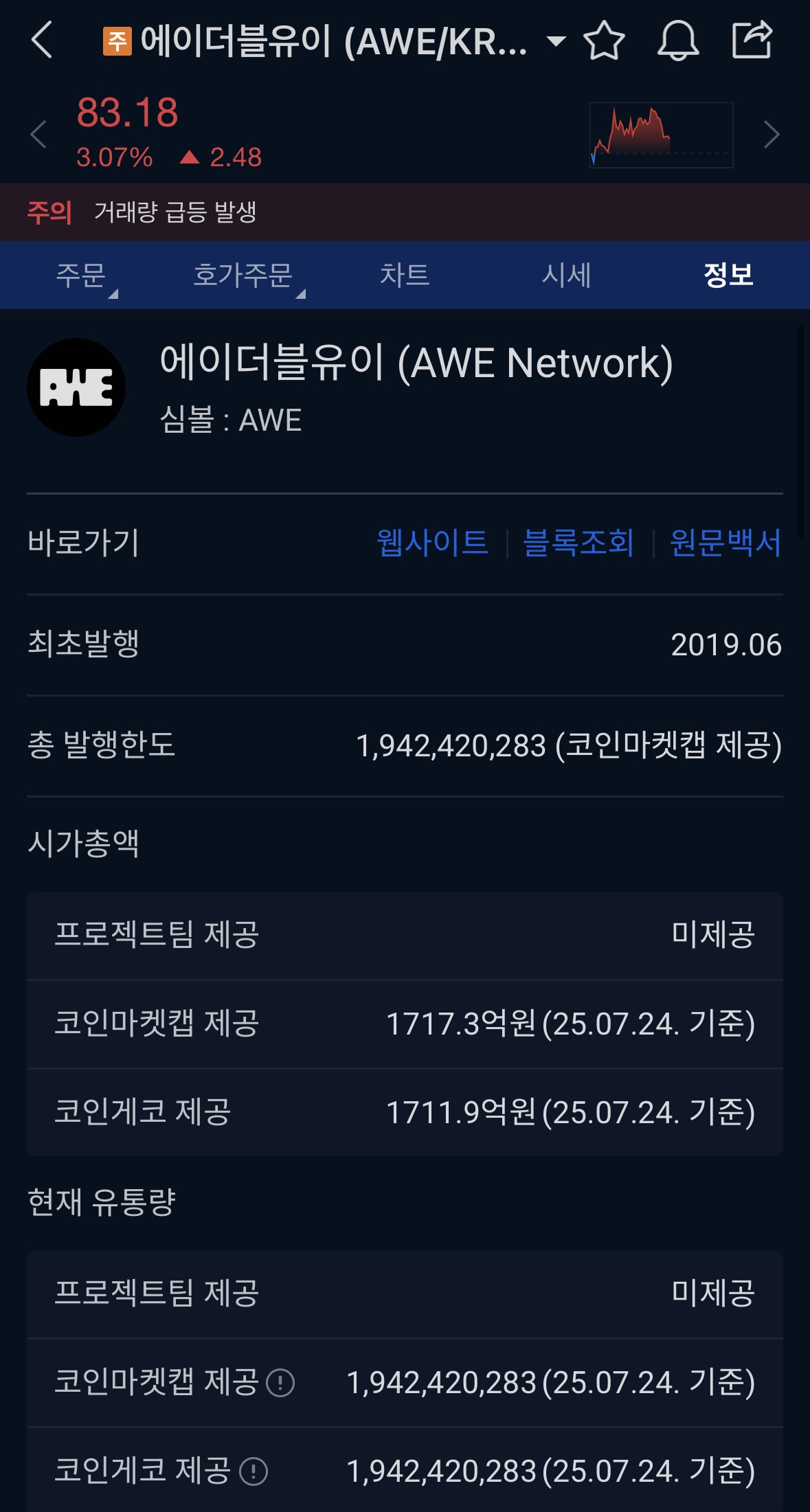 장기적으로 AWE가 성공하려면, 단기 가격 변동성에 기대기보다, 실제 AI 서비스와 생태계 활성화, 사용자 기반 확대가 필수적입니다.