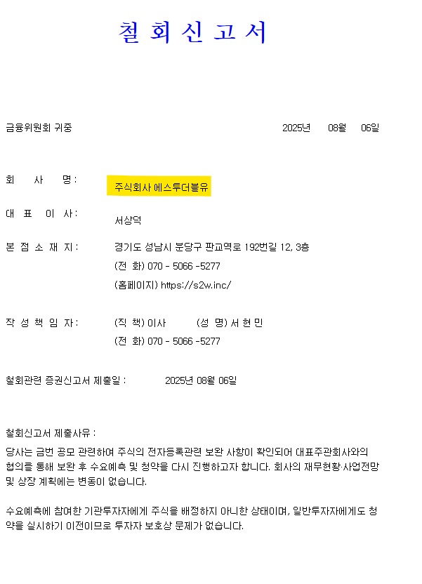 에스투더블유(S2W)의 코스닥 공모주 청약은 원래 2025년 8월 7일부터 8일까지로 예정되어 있었으나, 청약 당일에 돌연 철회된 소식이 금융권 및 투자자 사이에서 큰 이슈가 되었습니다. 이번 공모 철회는 IT·AI 업계와 공모주 시장 전반에 적지 않은 파장을 일으켰고, 그 배경과 원인, 업계 반응은 어떨까요?