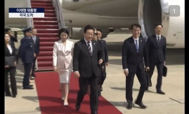 - 2025년 8월 24일 미국 앤드루스 합동기지 도착시, 이재명 대통령은 미국 측 부의전장 등 고위 실무진의 영접을 받았으며, 트럼프 대통령 및 영부인은 현장에 없었습니다.