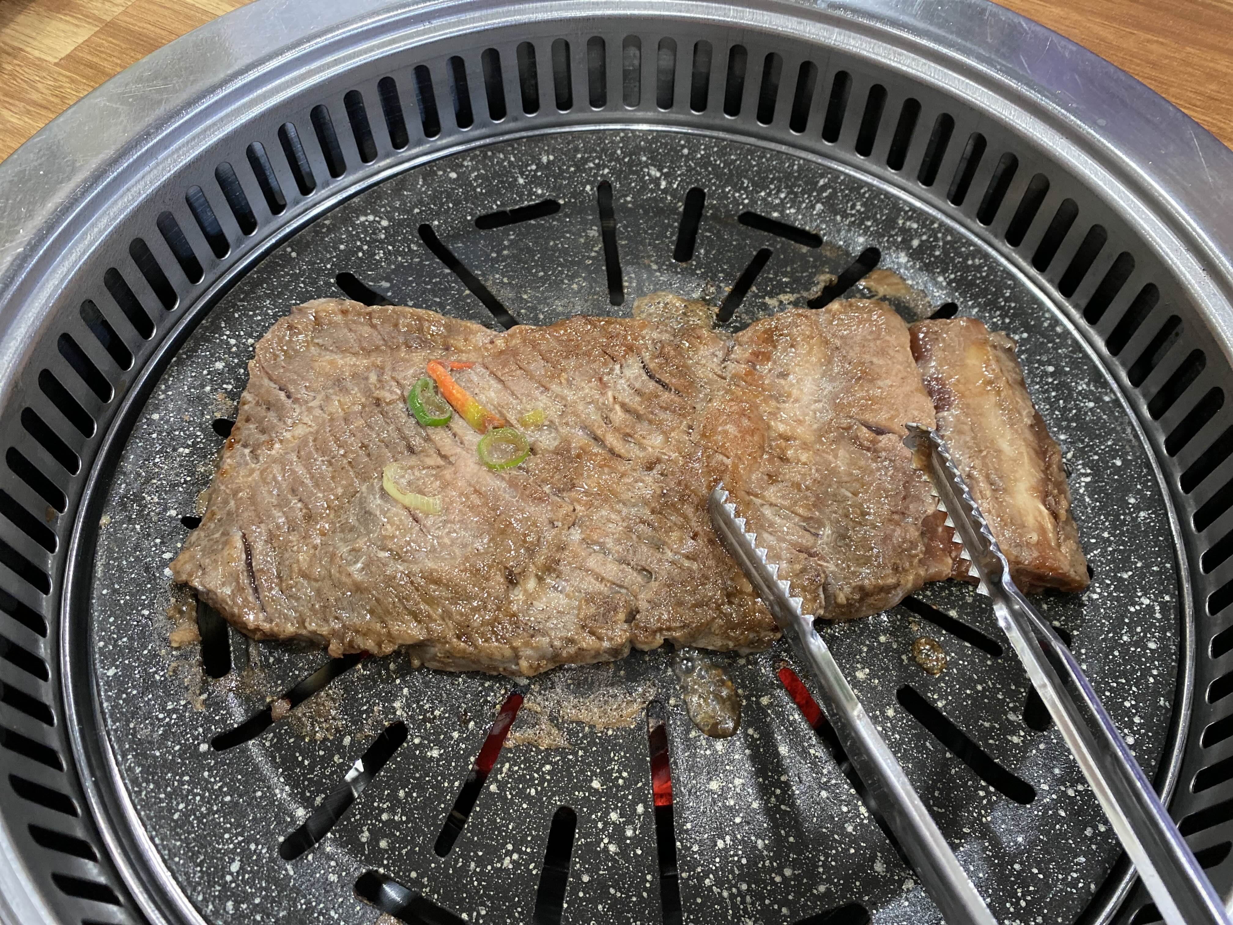 주문한 왕갈비(12,000원) 3인분 - 한덩어리는 굽는중 ㅎㅎ