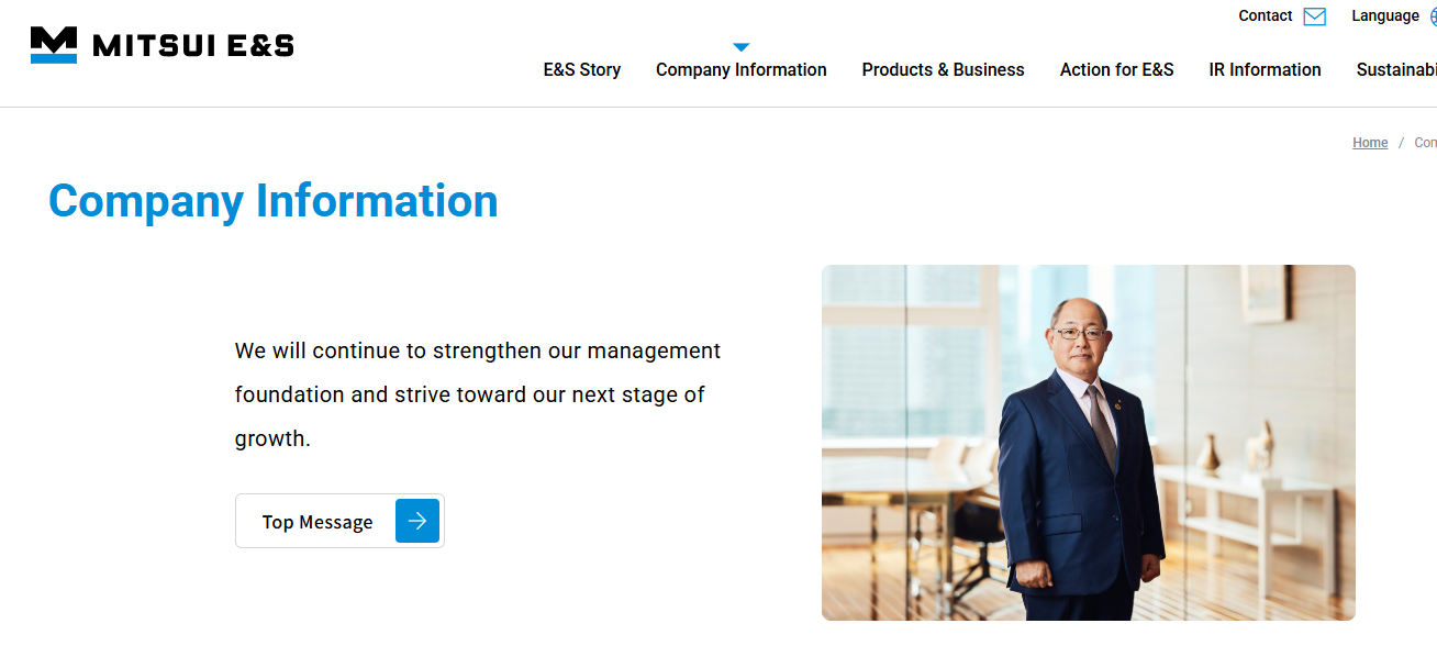 미쓰이E&S(주식회사 미쓰이E&S홀딩스, 7003.T)는 1917년 설립된 일본의 대표적 중공업 그룹으로, 본사는 도쿄에 위치해 있다. 100년 넘는 고전(古典) 조선명문인 만만해 수출입, 선박건조, 플랜트, 엔진, 기계 등 전통적 중공업 영역에서 강한 입지를 구축해 왔다. 회사 이름에서도 알 수 있듯이 과거에는 조선(船building)이 핵심 사업이었으나, 최근 사업 구조를 지속 개편하며 항만크레인 및 선박용 엔진 등 ‘메카트로닉스(기계+전자+ICT 융합)’ 사업에 집중 중이다.