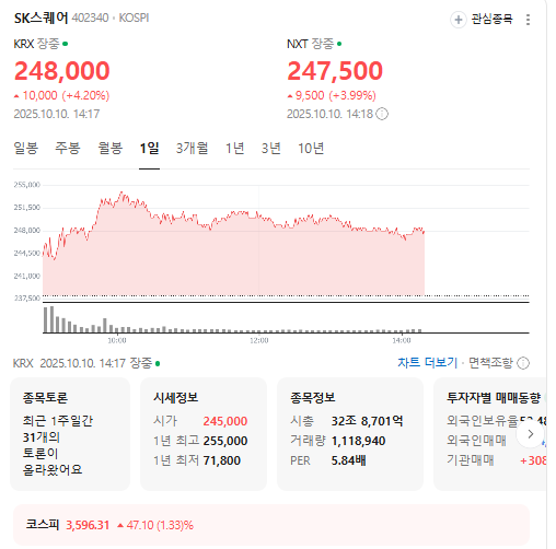 양사의 주가 차이 핵심은 성장성과 기업 가치 평가 기준에 있다. SK스퀘어는 순수 투자회사로서 SK하이닉스의 실적 개선과 HBM 등 차세대 반도체 기술 수요 증가에 따라 수혜를 입고 있다. 2024년 이후 SK하이닉스의 영업이익이 급증하며 배당금도 증가해 2025년 기준 분기 375원 이상의 배당이 지급되며 주주환원 확대에 기여하고 있다. 반면 SK텔레콤은 통신 시장의 정체성과 5G 투자 부담으로 성장 둔화를 겪고 있으며, 2025년 상반기 연결 기준 매출과 영업이익이 전년 동기 대비 감소한 것으로 나타났다.