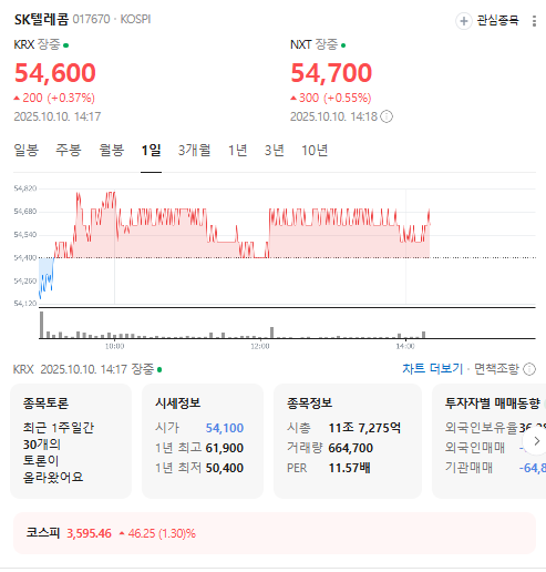 SK텔레콤의 주가는 2025년 10월 기준 약 54,000원 수준에서 거래되며, 2026년에는 주가 반등 가능성이 제기되고 있다. 하나증권은 2026년 SK텔레콤의 연결 영업이익이 통신 3사 중 가장 높은 성장률을 기록할 것으로 예상하며, 목표주가 7만 원을 제시하고 있다. 이는 2026년 이익 전망치 상향 조정 가능성이 있다는 전망과도 일치한다. 주가 하락 시에는 배당수익률이 7%에 달해 방어적 매수세가 유입될 것으로 보이며, 5만1,000원 선이 주가 바닥으로 간주될 가능성도 있다. 그러나 2025년 실적은 과징금 부과, 요금 할인 정책 등으로 부진할 전망이기 때문에 2026년으로 눈을 돌려야 한다는 분석이 지배적이다.