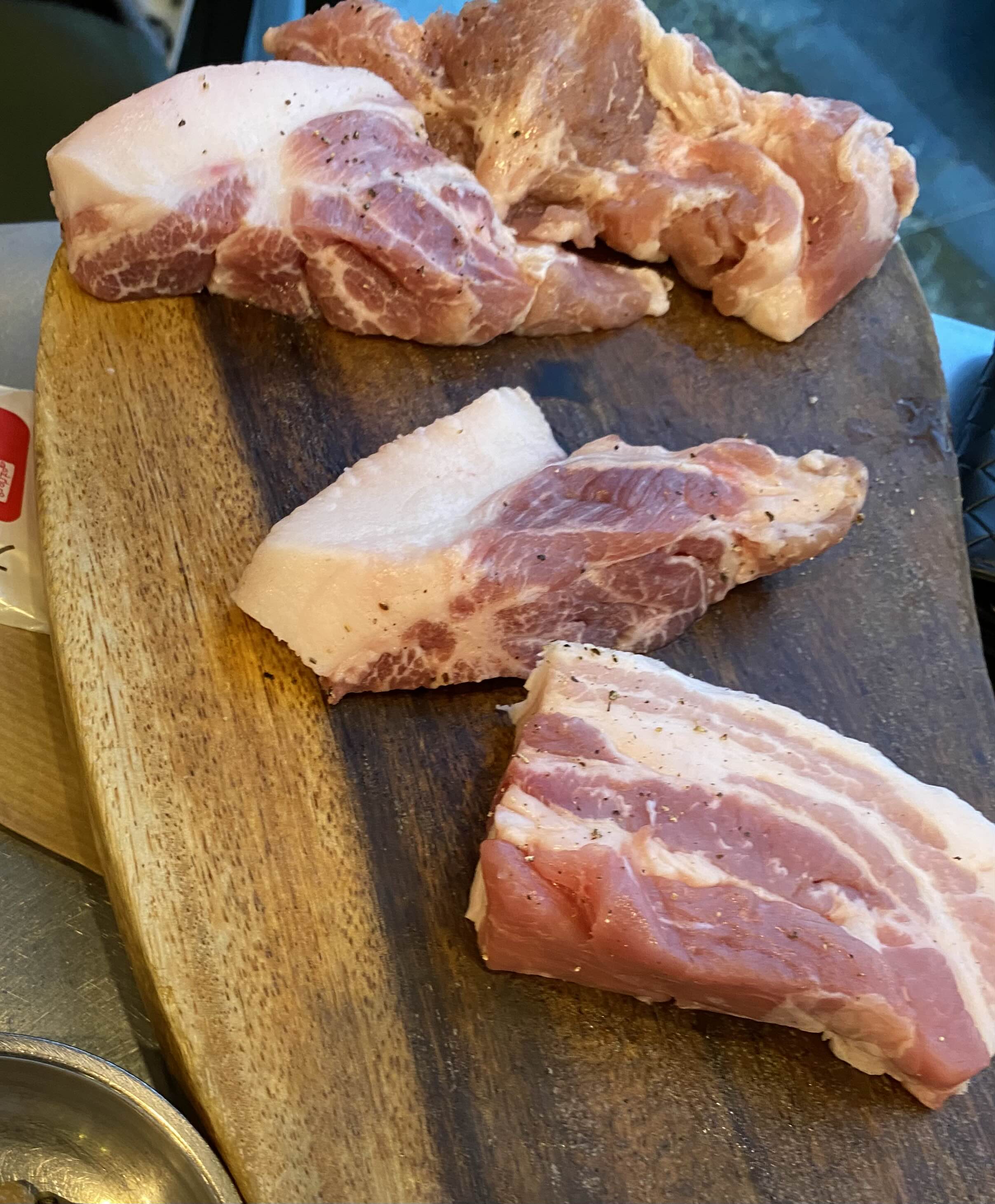 삼겹살을 먹으러왔기에 생삼겹살(12,000/170g)과 꼬들살(12,000/170g)을 시켜봤습니다.