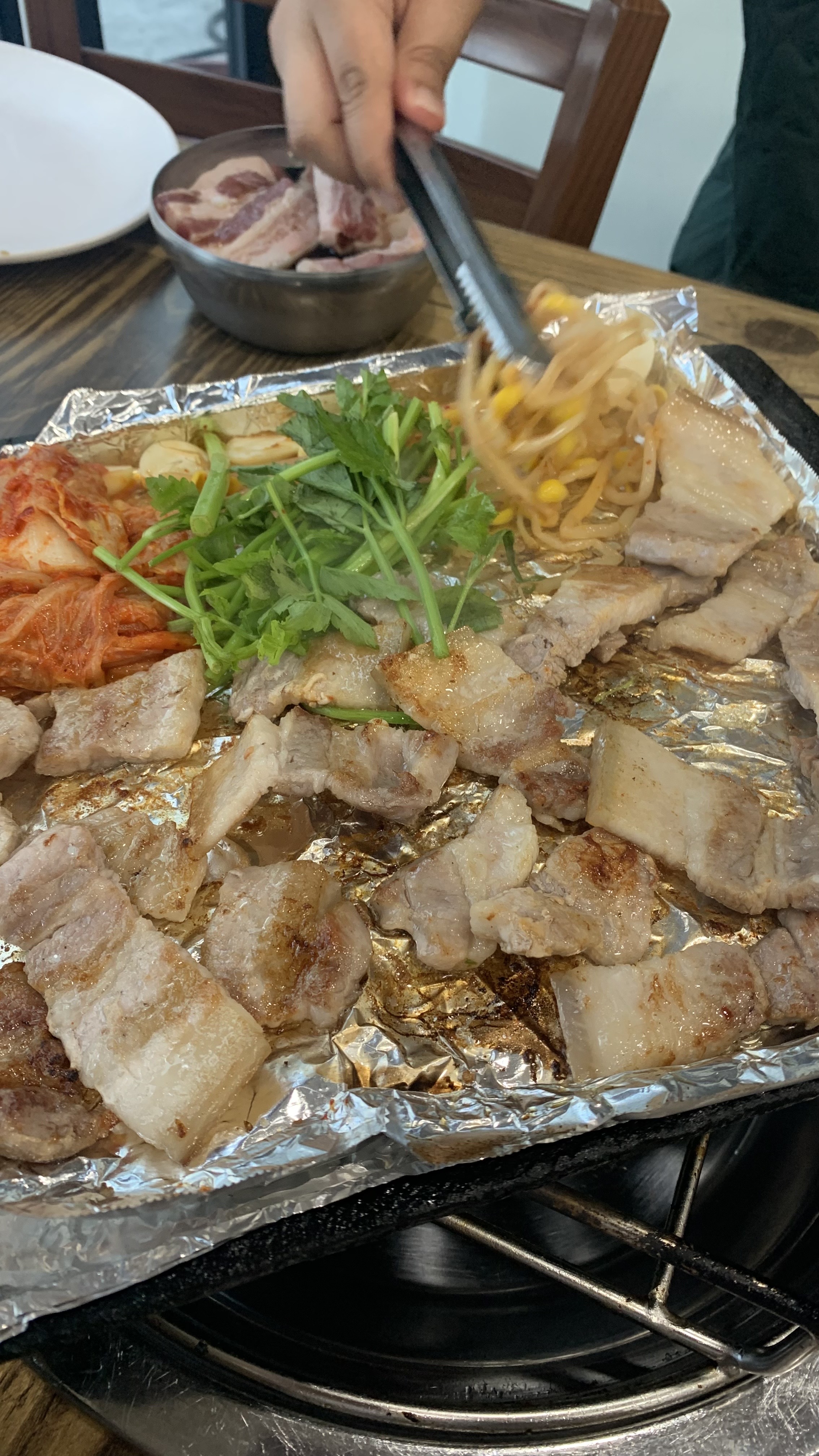 또 미나리와 김치와 콩나물과 불판 한가득 먹어야죠