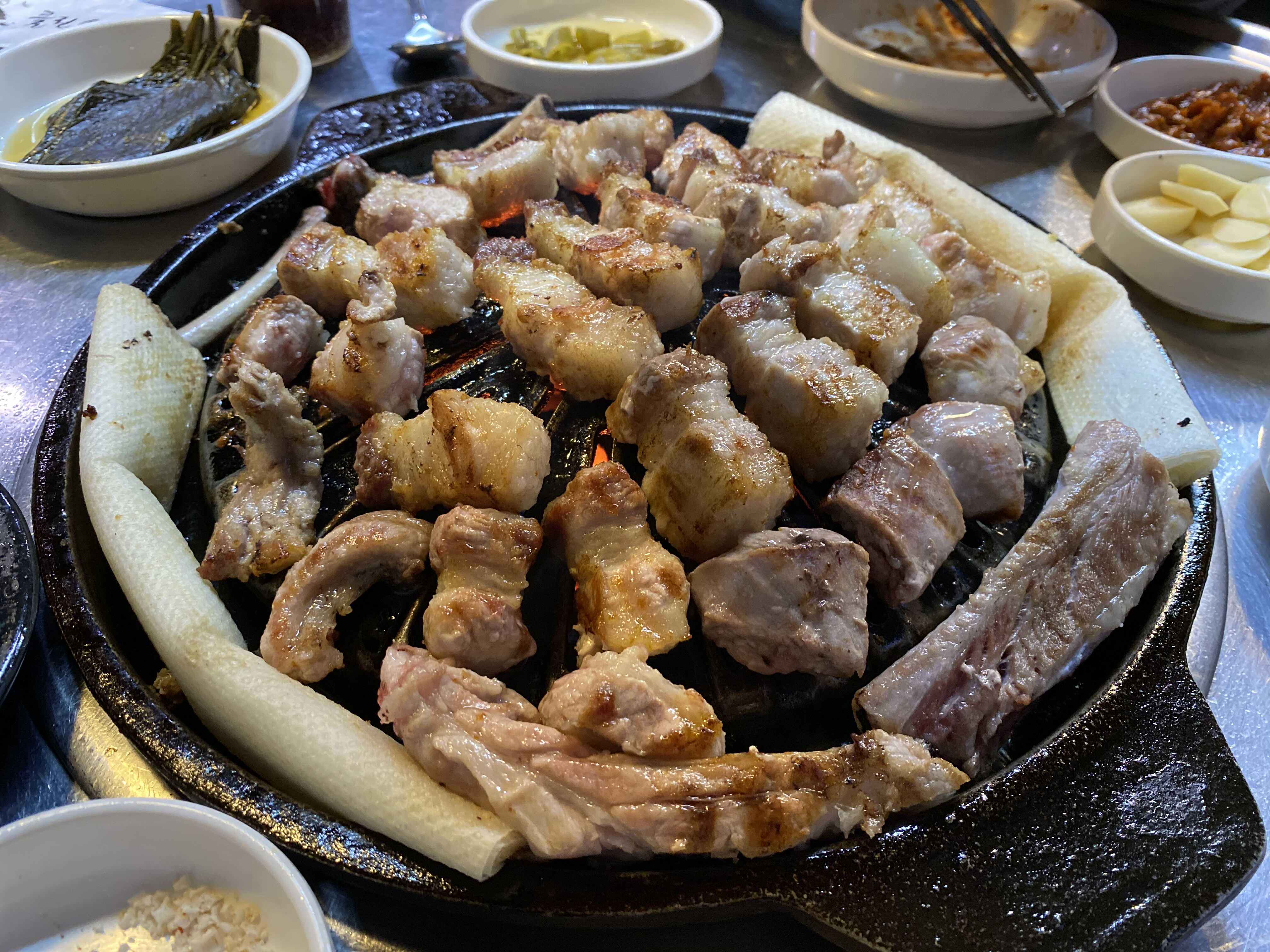 이날 셋이 생갈비 5인분에 젓갈볶음밥도 3인분을 먹었어요... 돼지쓰