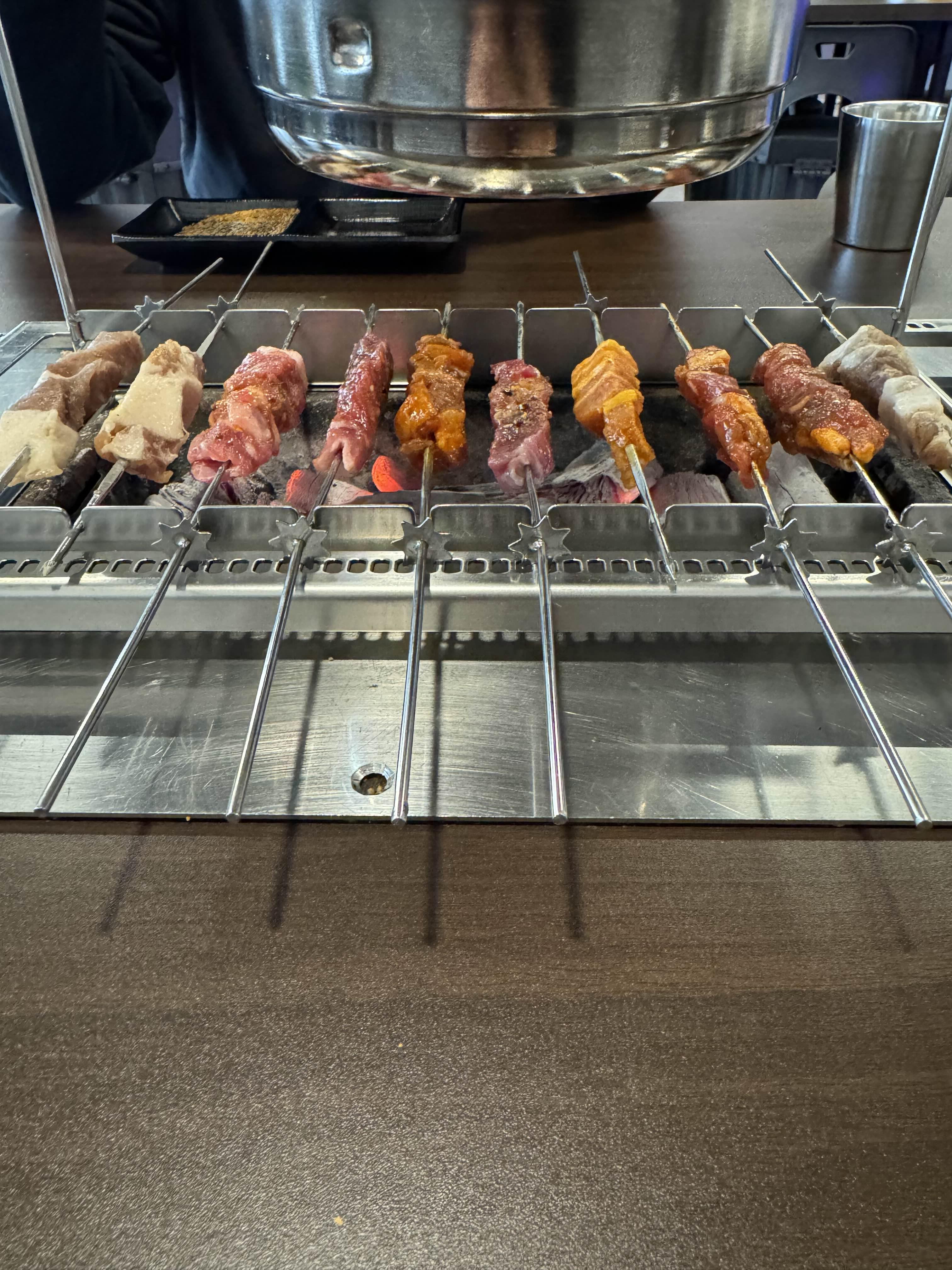 저는 훠궈 초보라서 양꼬치를 즐기기로..