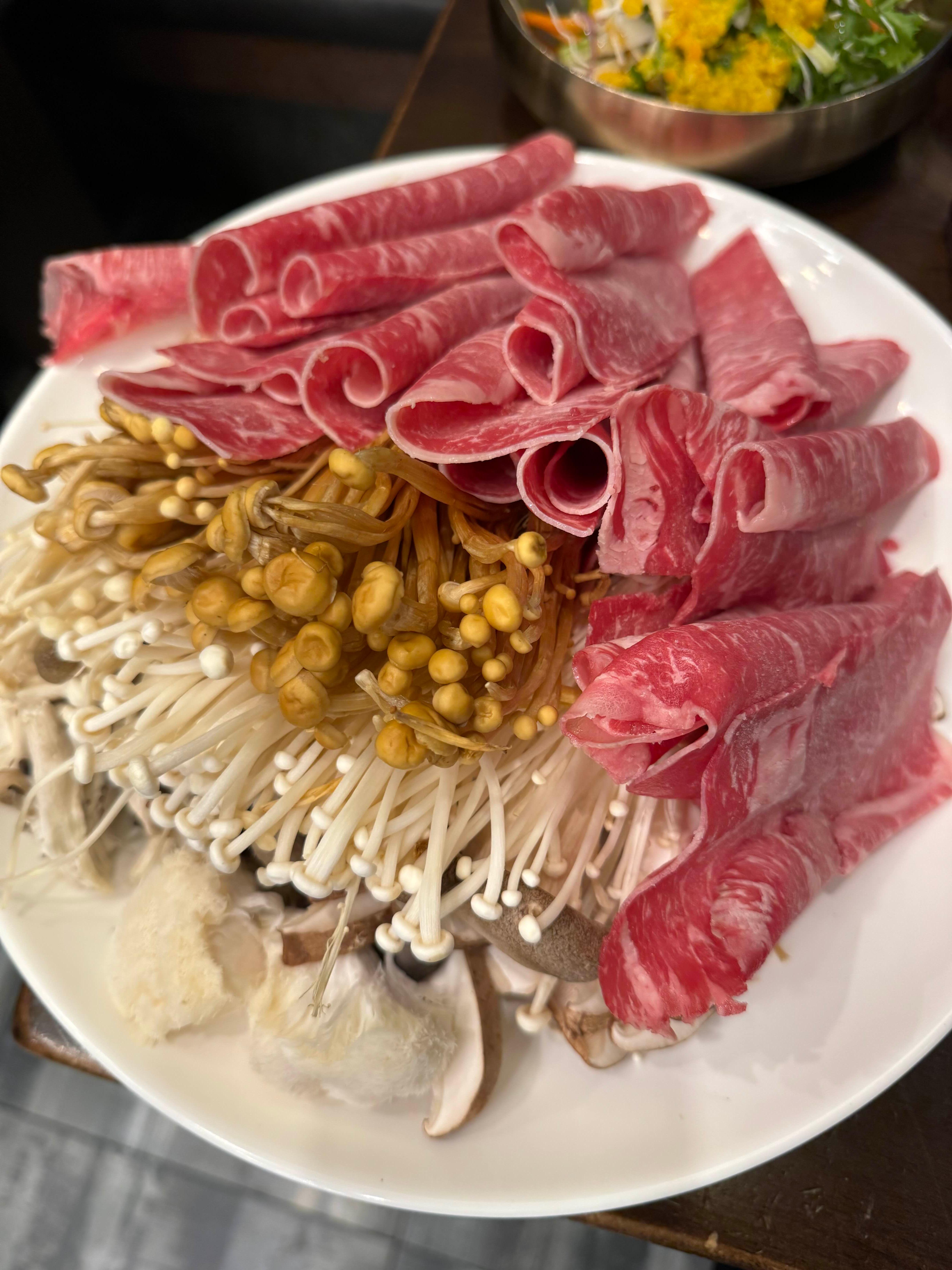 신선한 버섯과 샤브 고기!!