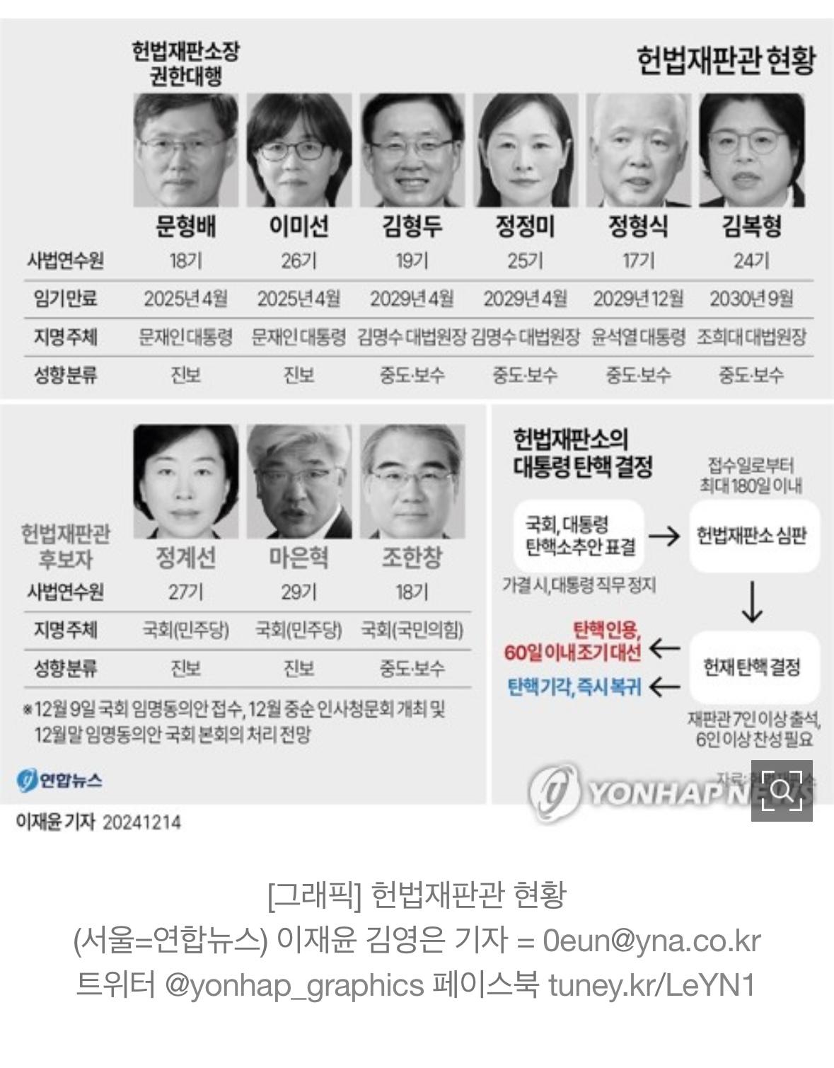 - 한덕수 국무총리(권한대행 가능성)가 진보 성향 재판관 임명을 미룰 가능성도 있습니다.