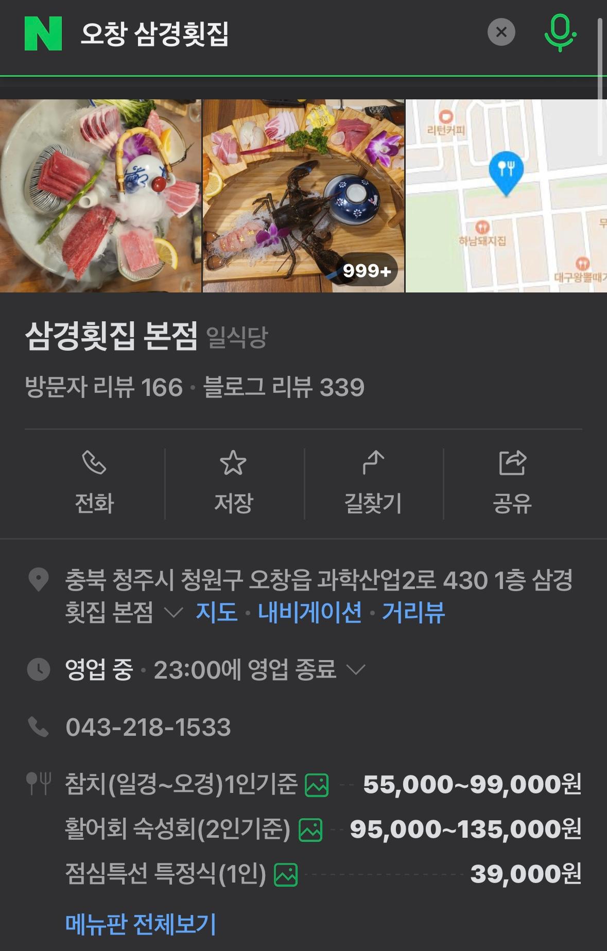 오창 삼경횟집 네이버 정보는 아래와 같구요~