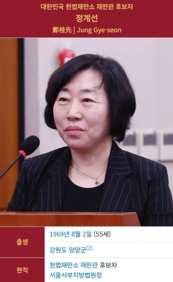 정계선 | 헌법재판관 후보자 | 헌법재판관 공석 임명 후보 | 정계선 | 고향 | 프로필 | 학력 | 경력 | 정치성향 | 알아보기